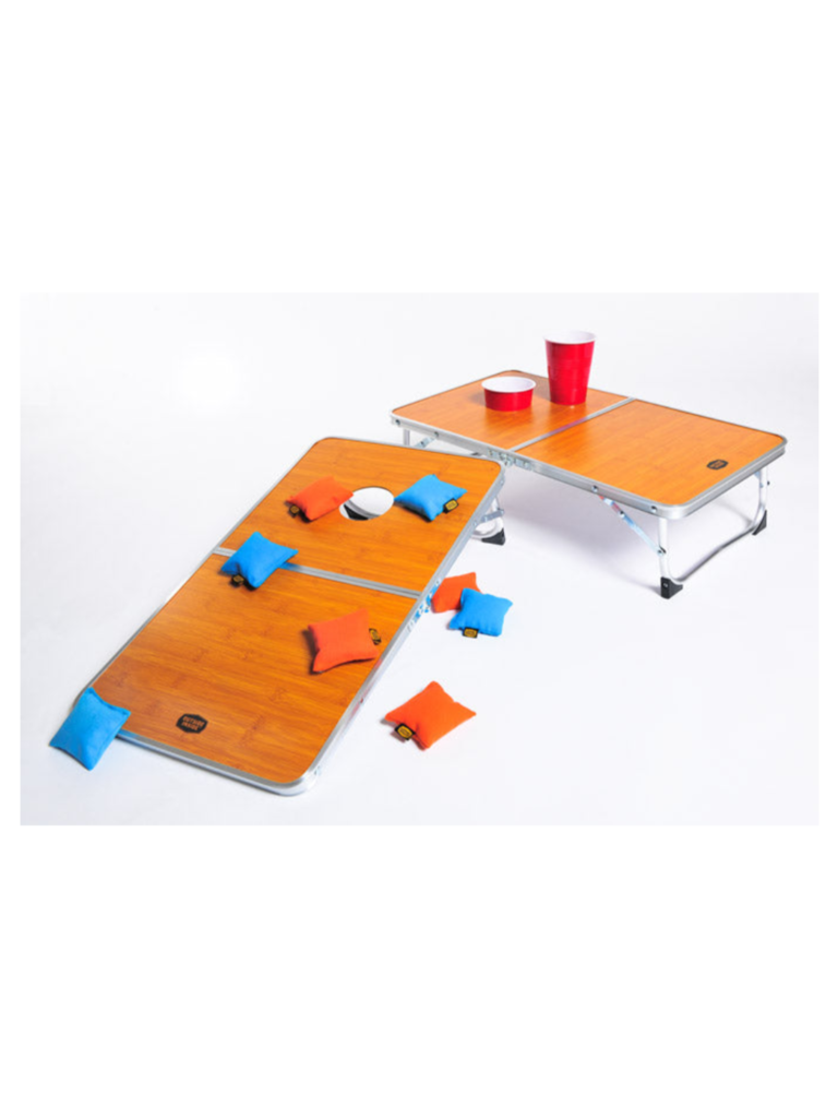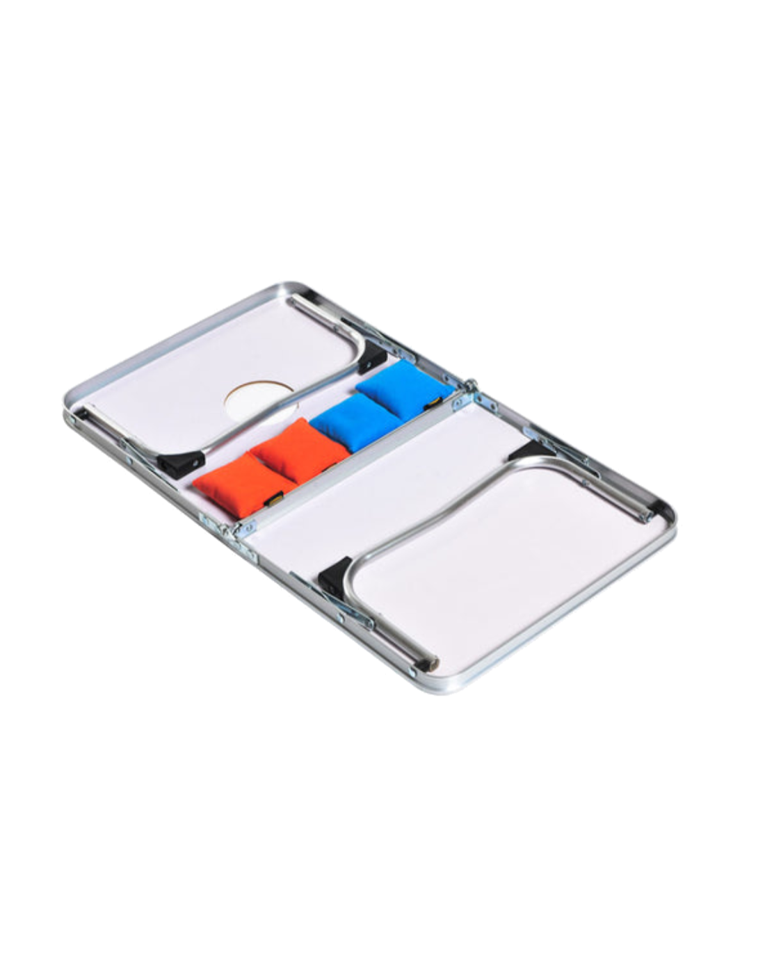 Includes: 2 collapsible tables, 8 bean bags in 2 colors, Travel bag