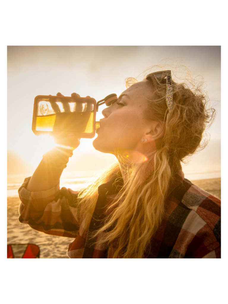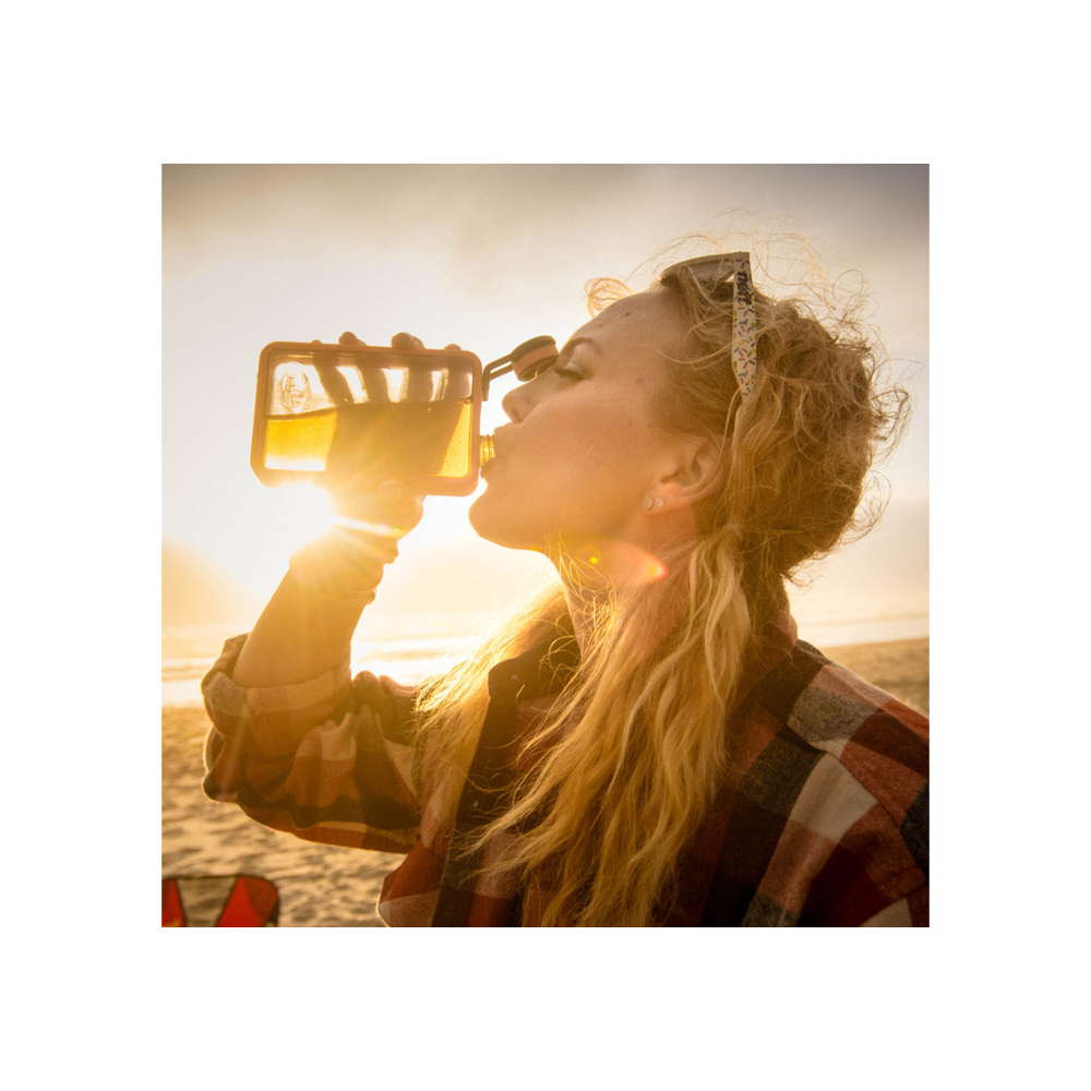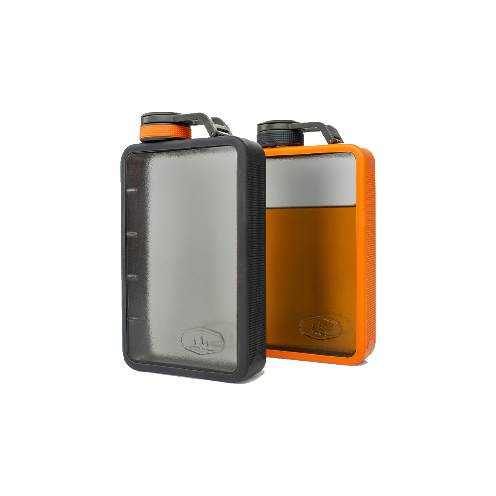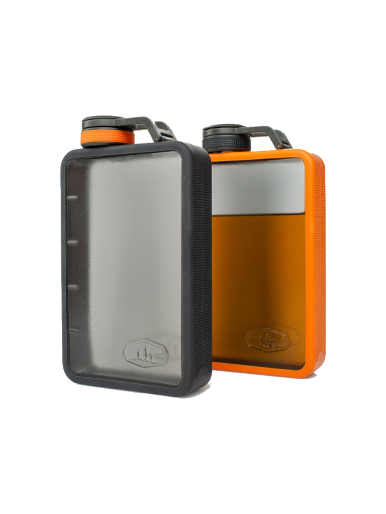 - Includes: Hinged cap, Silicone Bumper, 10 fl. oz. Flask