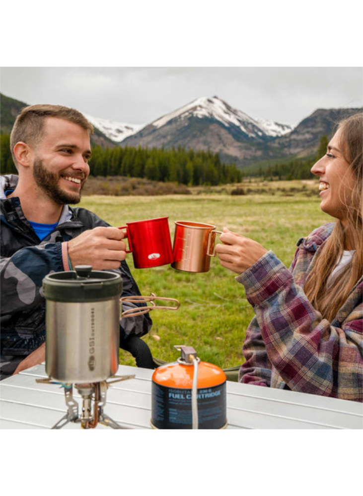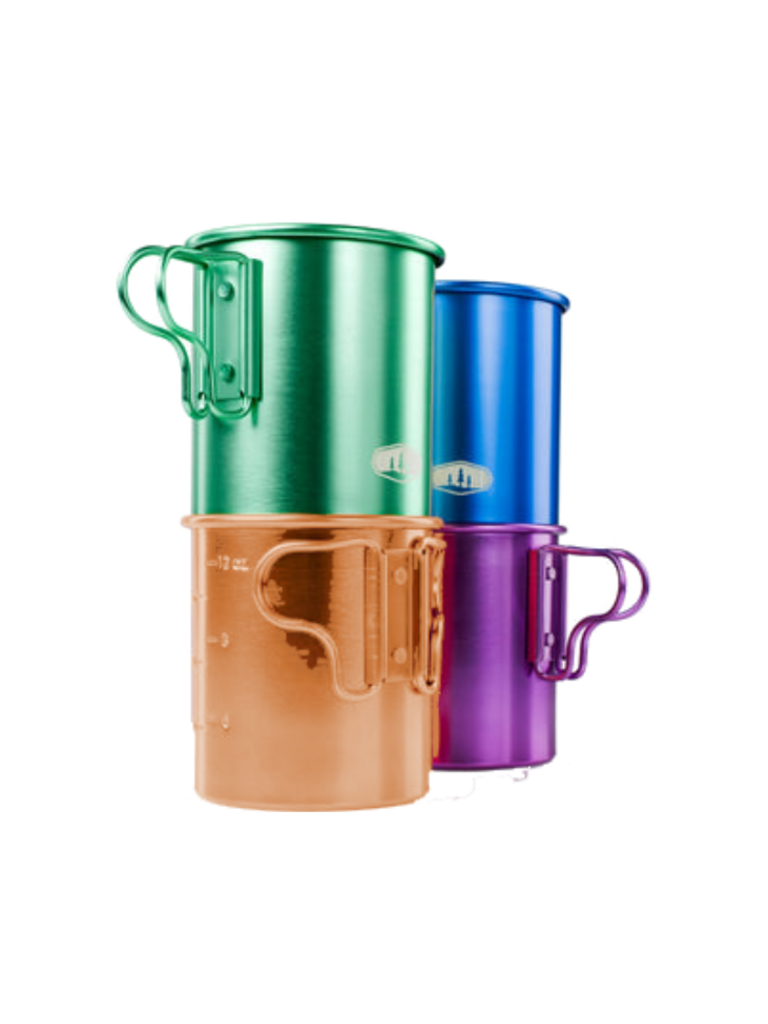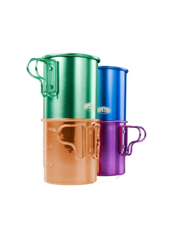 This ultra-lightweight camping and hiking cup made of high-grade aluminum features folding handles and stamped-in graduations.
