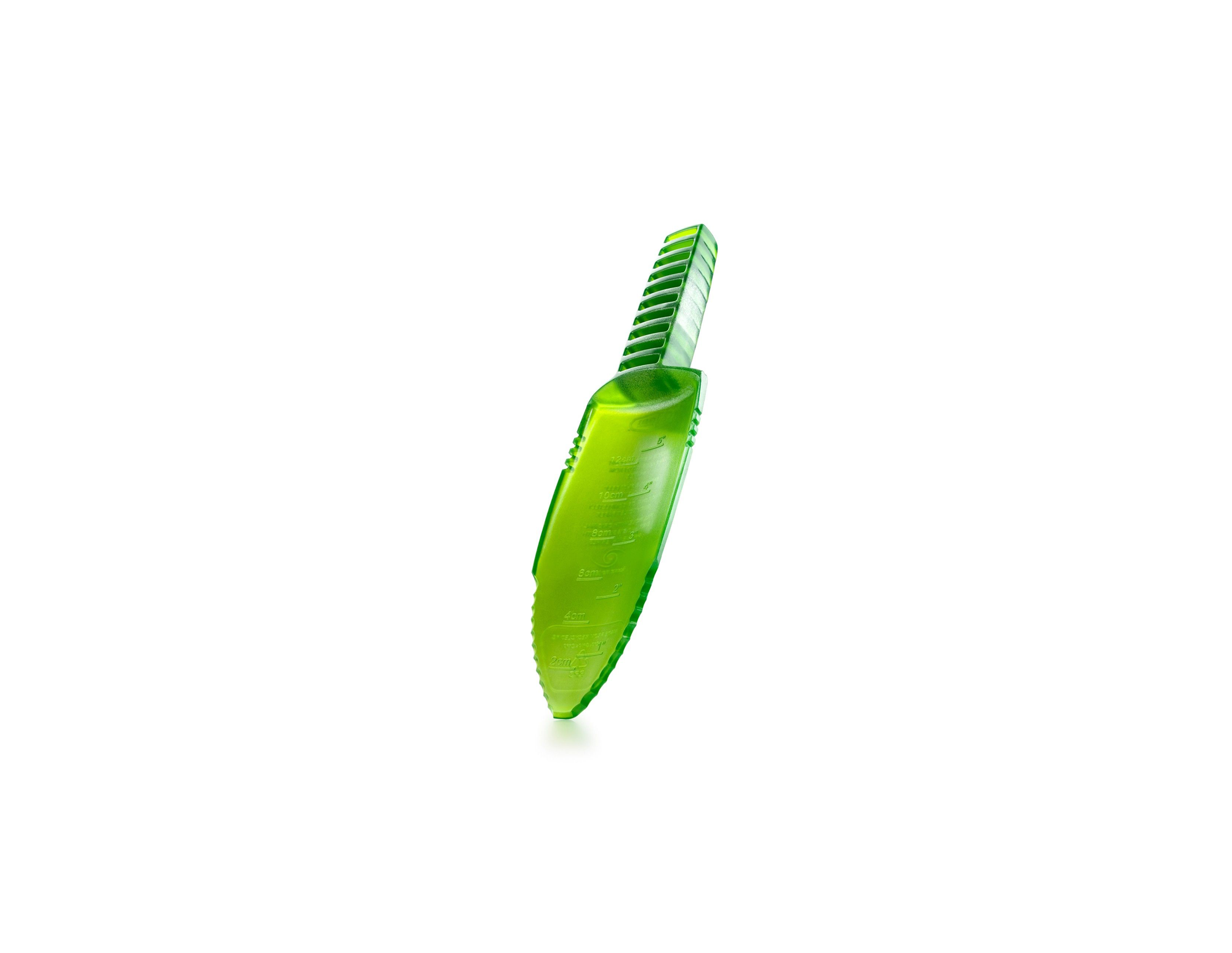 Graduated blade and Leave No Trace use guidelines molded onto the back help teach or remind you where to go about your business.
