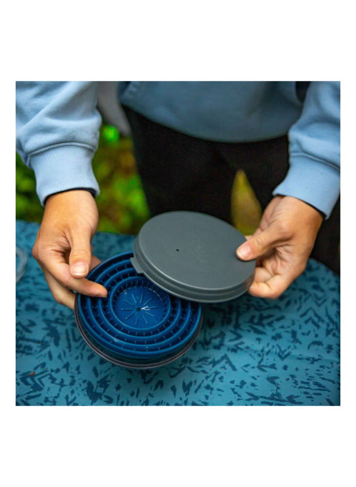 The convenient cover even doubles as a trivet for the cone when you're done brewing and keeps everything clean during transport.