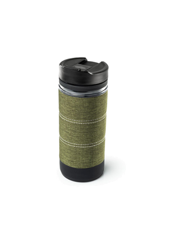 Inner sleeve doubles as insulating layer to help keep coffee hot.