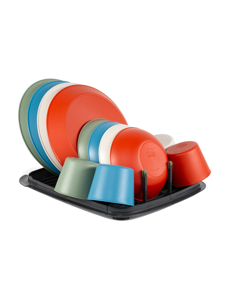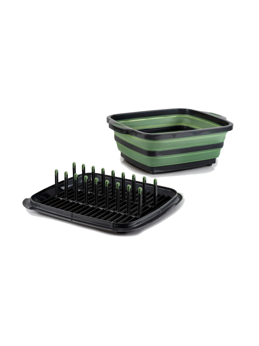 Create an accountThis compact, collapsible drying system includes a drainboard, dish rack, and a multi-functional guttered cutting board. Raised fins elevate dishes for faster air drying and help prevent microbial growth, while stabilizing tines keep plates and glasses upright and secure.