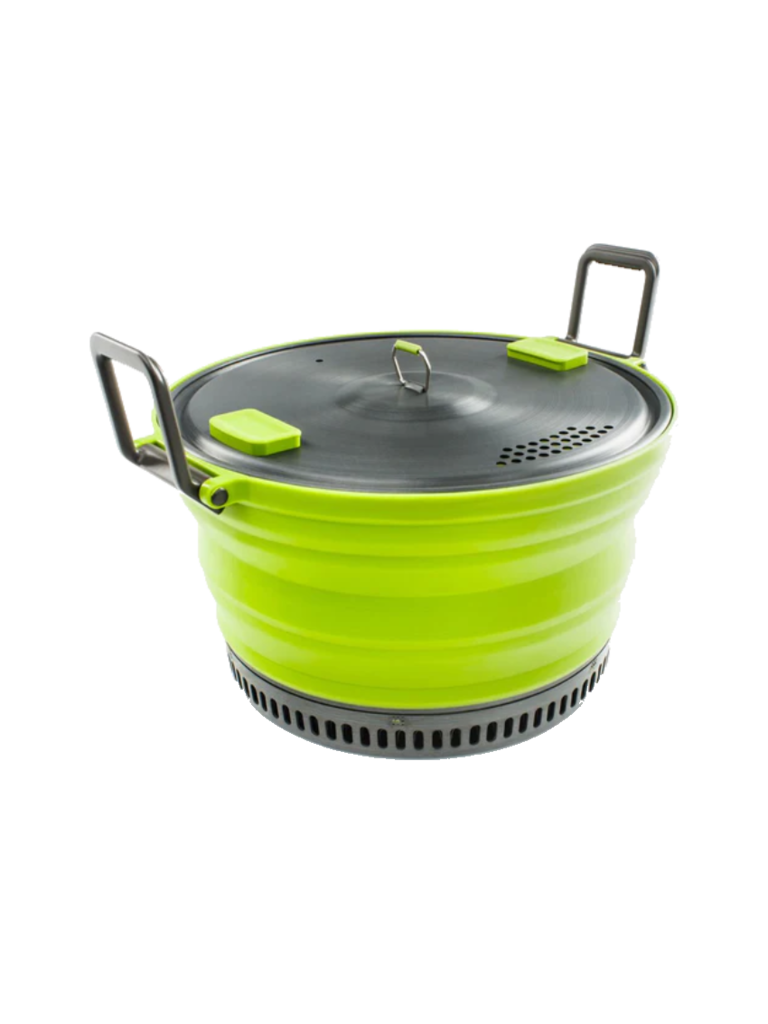 - Includes: 3 L Collapsible Pot, Folding Handles, Strainer Lid