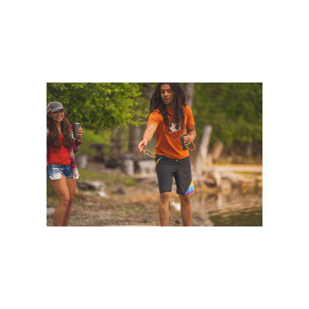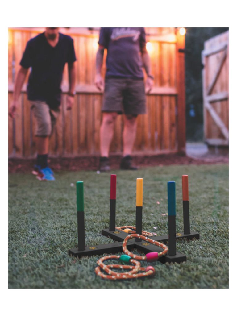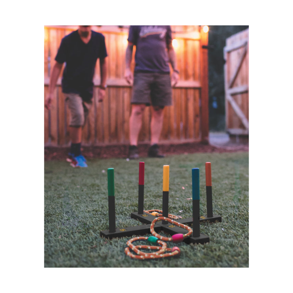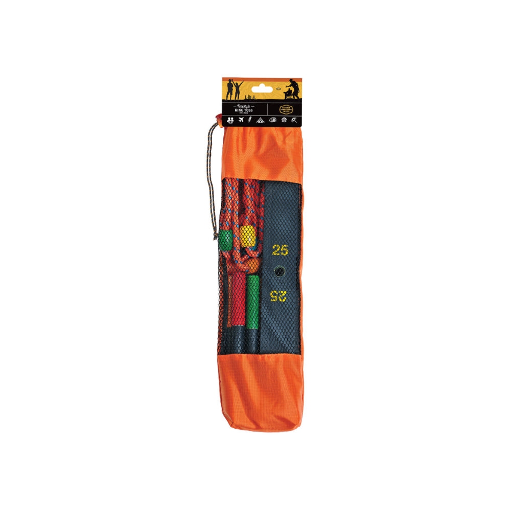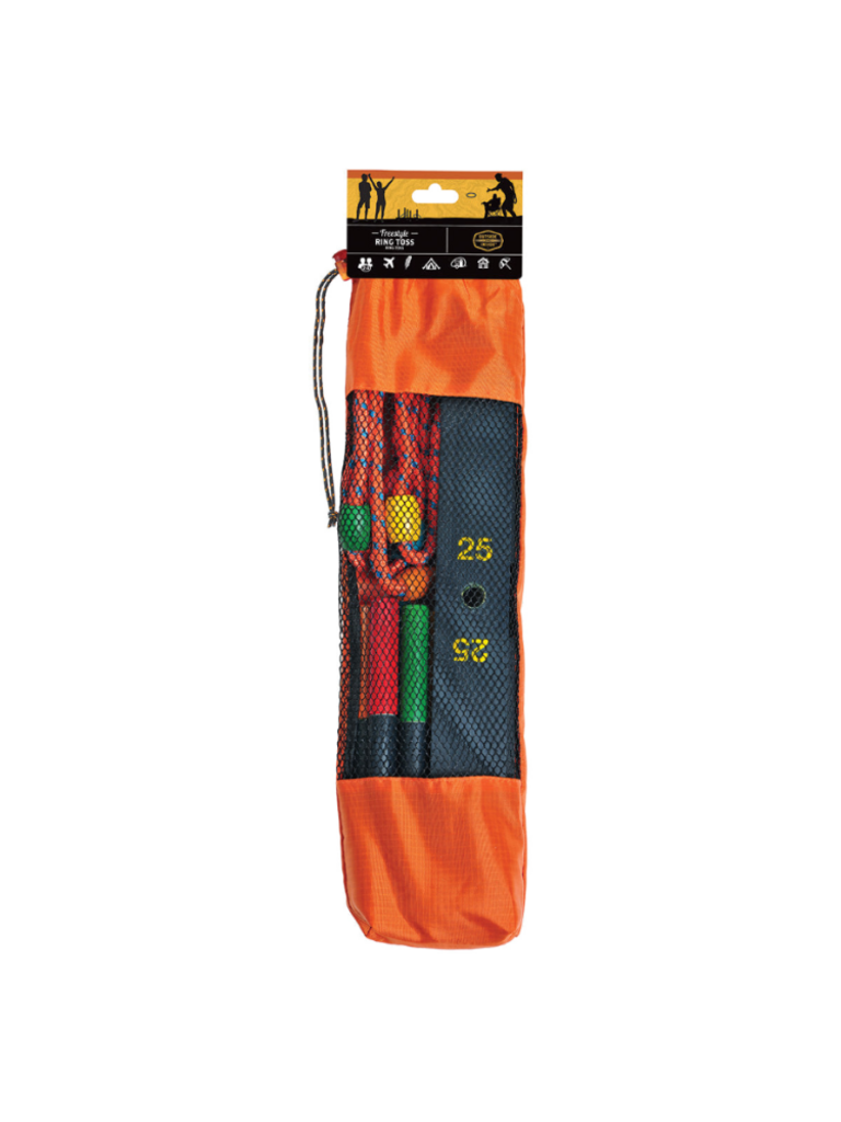 - Includes collapsible game board, 5 rope rings, instructions and carry bag.