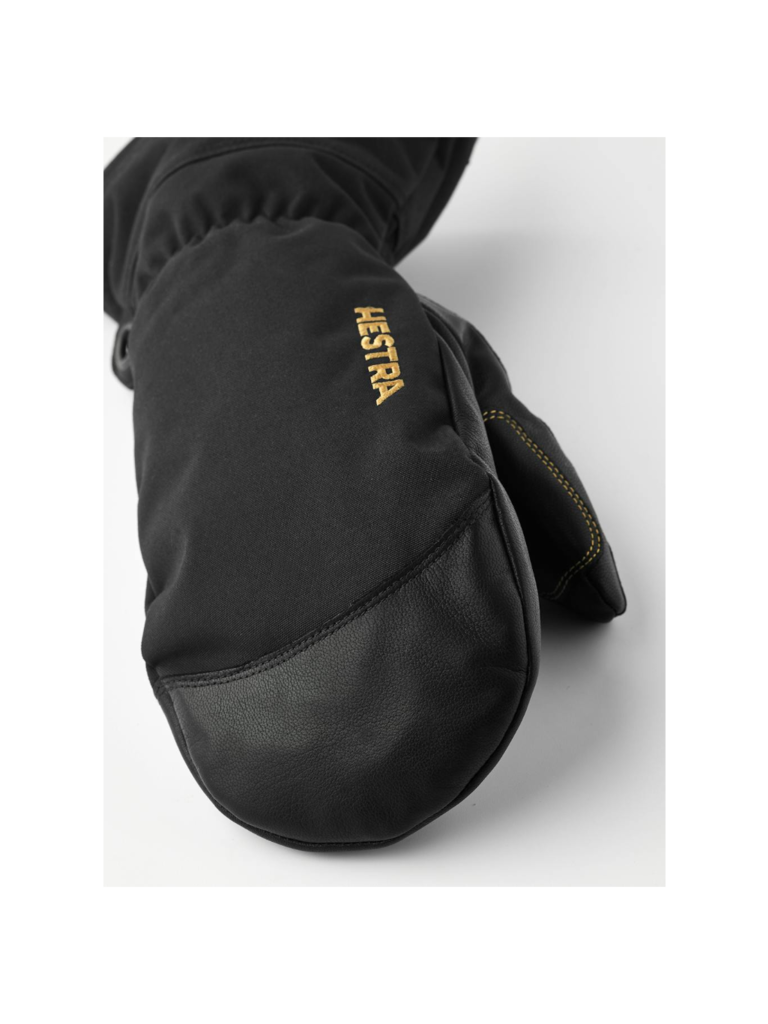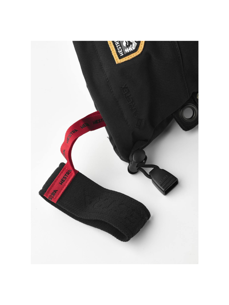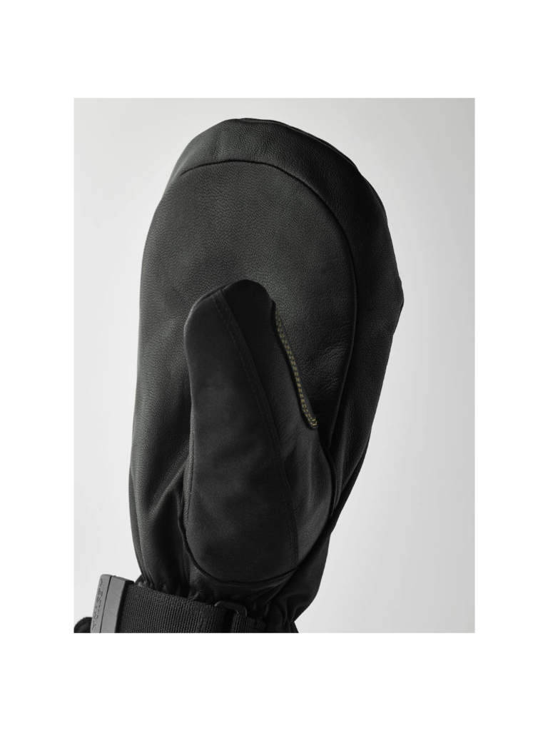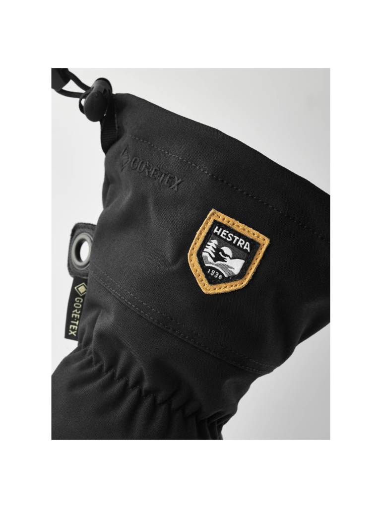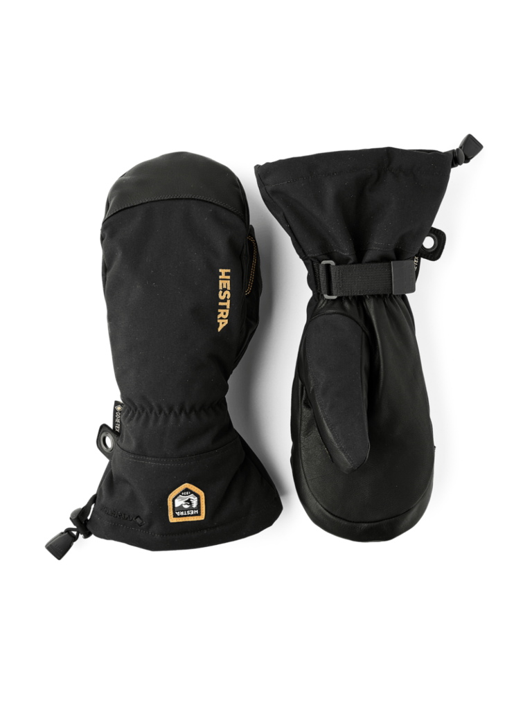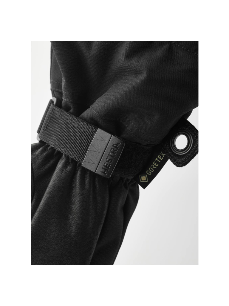 The Army Leather GORE-TEX* is a warm mitten for skiing in tough weather conditions. As a mitten, it offers extra warmth for those who are prone to cold fingers. Sewn in hardwearing goatskin and heavy-duty recycled polyamide fabric. The fit is pre-curved for comfort and grip. A fleece liner with G-Loft synthetic insulation keeps the cold out.
