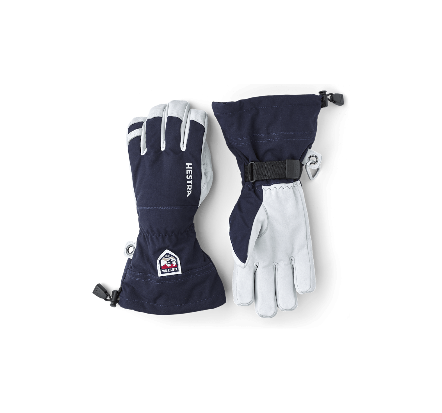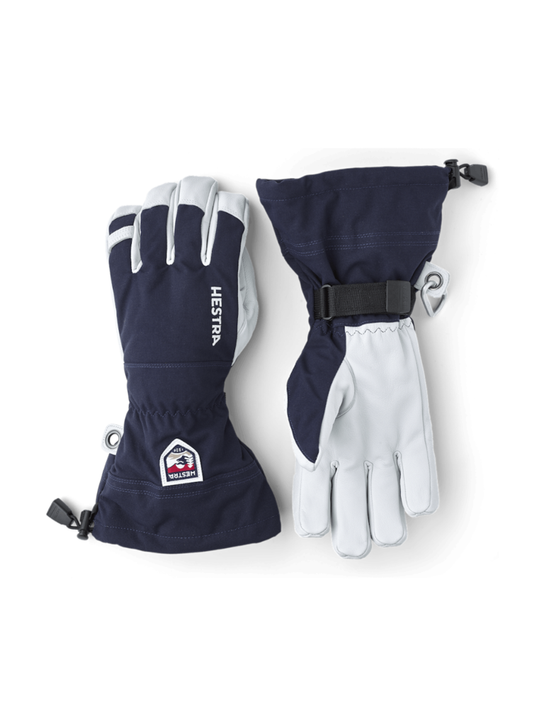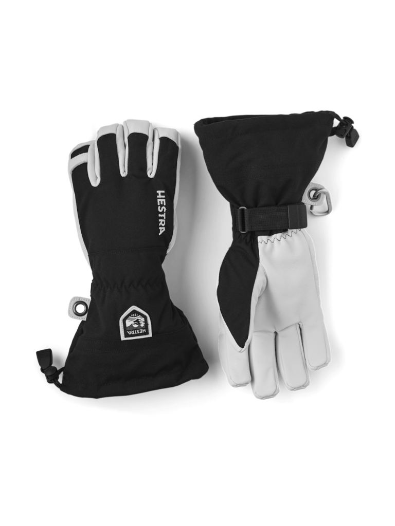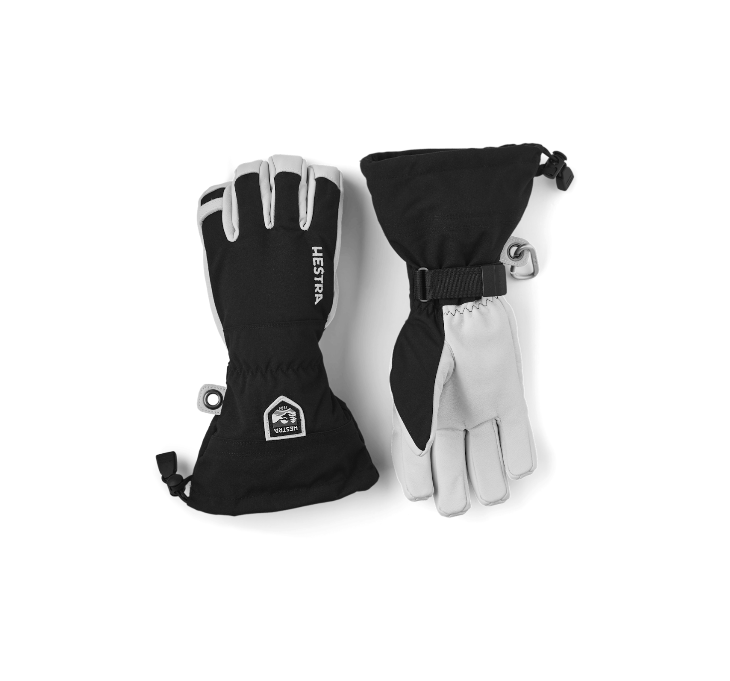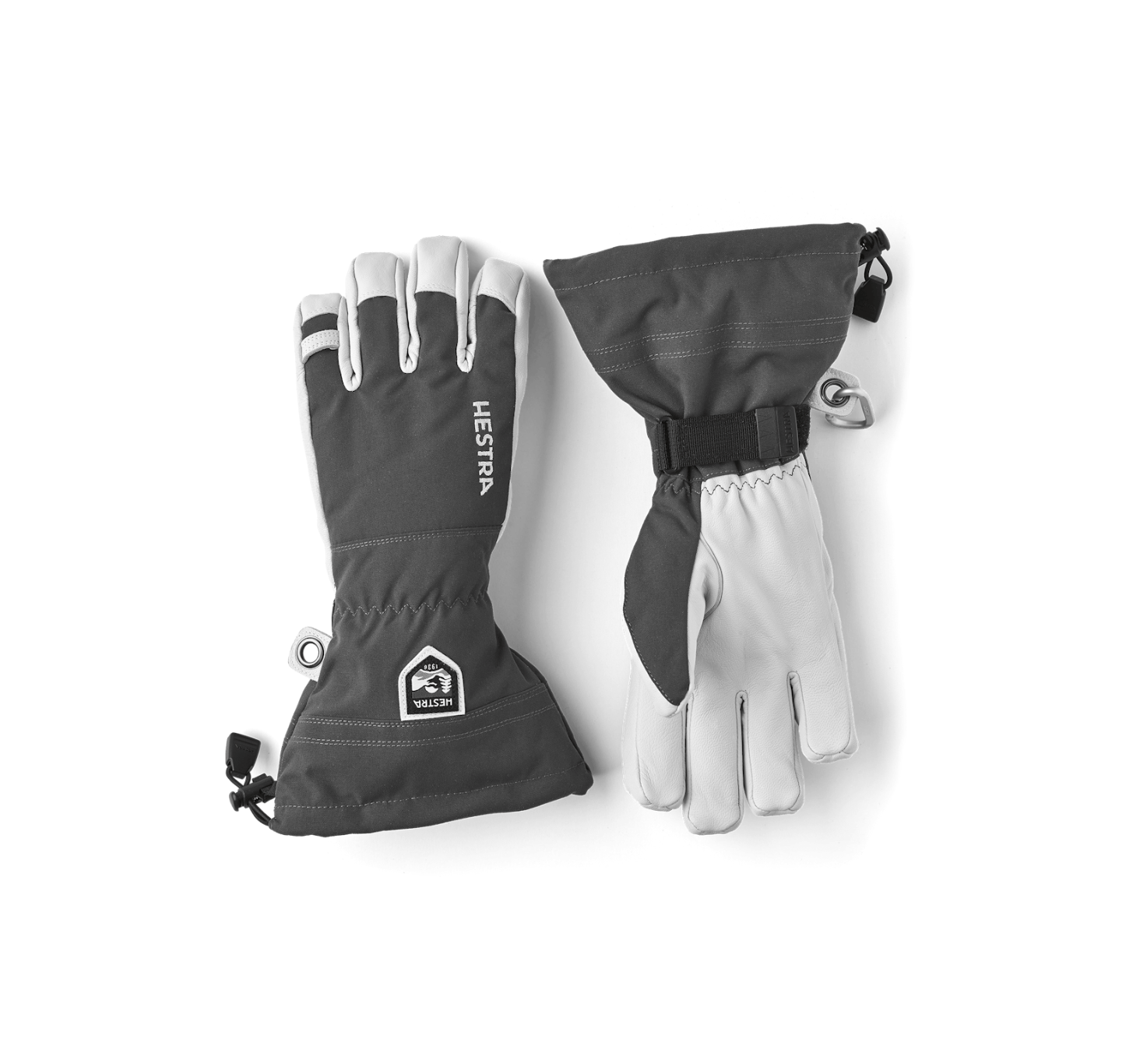 Hestra's Army Leather Heli Ski was originally created for ski guides in western Canada who needed a reliable and warm ski glove for long days of snow and cold. Made of durable goat leather that provides exceptional grip and feel, and a waterproof, 3-layer polyamide fabric backhand. This 5-fingers ski glove has a range of smart functions that come in handy when you can't go in and warm up so often. The liner, for example, can easily be replaced if it gets moist or to adapt to varying activity levels and temperatures. And the long collar has a snowlock that, together with a Velcro strap on the wrist, ensures warmth stays inside the glove. A wrist strap reduces the chance of dropping the glove if you take it off to answer the phone or adjust your equipment. An included carabiner and an eyelet on the pinky finger makes it possible to hang the glove with its opening facing downwards on your ski pants or climbing harness – practical to avoid it being filled with snow while you work with just a thinner liner on your hands. A durable, flexible companion for skiers that spend a lot of time outdoors and who often find themselves far from the ski resort and its comforts. Also available as mitt and 3-finger model.
