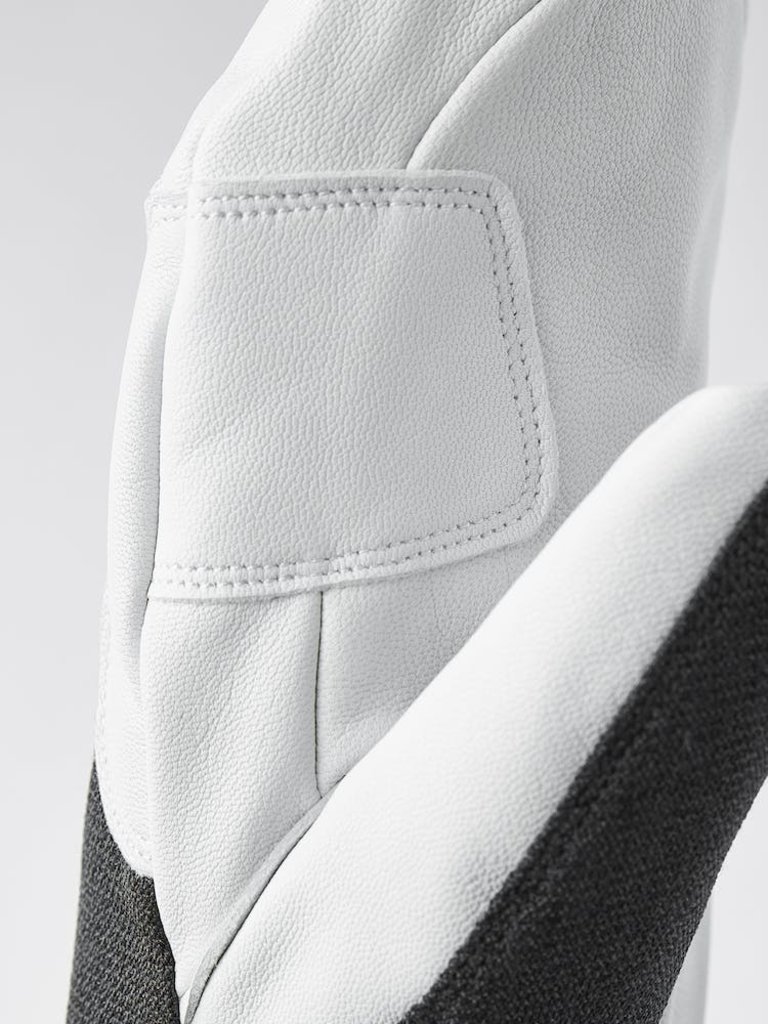 The Army Leather Patrol Gauntlet is a warm, durable mitten for long, cold days in the snow. Suits skiers looking for an extra warm glove as the mitten version traps more air for insulation around the hand. The palm in goatskin leather has outward-facing seams for good grip, while the backhand is in weather-resistant softshell fabric. A fleece liner with G-Loft synthetic insulation keeps fingers warm even in low temperatures, and can easily be removed to wash or dry. A number of well-thought-out details make for superb functionality on the mountain. In powder snow, you'll appreciate the high, protective cuff, while the wrist strap reduces the risk of losing a glove. A carabiner and eyelet let you hang the glove with the opening facing downwards to avoid it filling with snow if you take it off. A hardwearing, reliable companion happy to accompany you off the beaten track, away from the ski lifts and comforts of the ski resort. Also available in a 5-finger model.