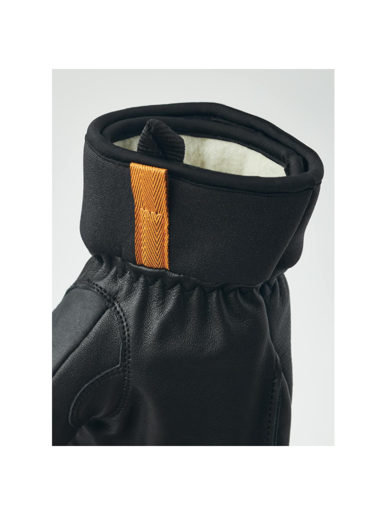 The outer glove is sewn in hardwearing goatskin leather and flexible cowhide* while the seams face outwards for comfort and good pole grip. The wool terry and wool fleece liner is warming and wicks away moisture and can easily be removed when it needs washing or drying. A neoprene cuff encloses the wrist, keeping the heat in around the hand and there's also a wrist strap, reducing the risk of dropping a glove if you take it off to adjust your equipment.