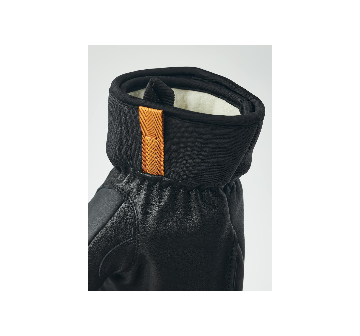 - Short leather glove for skiing and snowboarding with a clean design