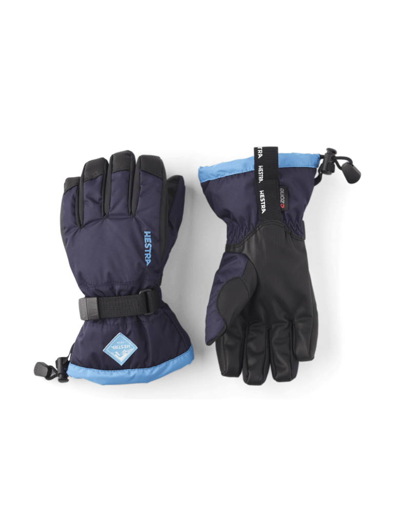 A warm, comfortable kids’ glove for skiing, play and outdoor activities in cold winter weather. One of Hestra’s most popular junior gloves, sewn in hardwearing polyester with a waterproof, breathable CZone membrane and a longer cuff to keep the snow out. Fingertips and palm are reinforced with PU-coated synthetic fabric for extra strength and grip on poles, sledges and other winter gear. The liner is made of polyester fleece with warm synthetic insulation. Also available as a mitten and in a three-finger version.