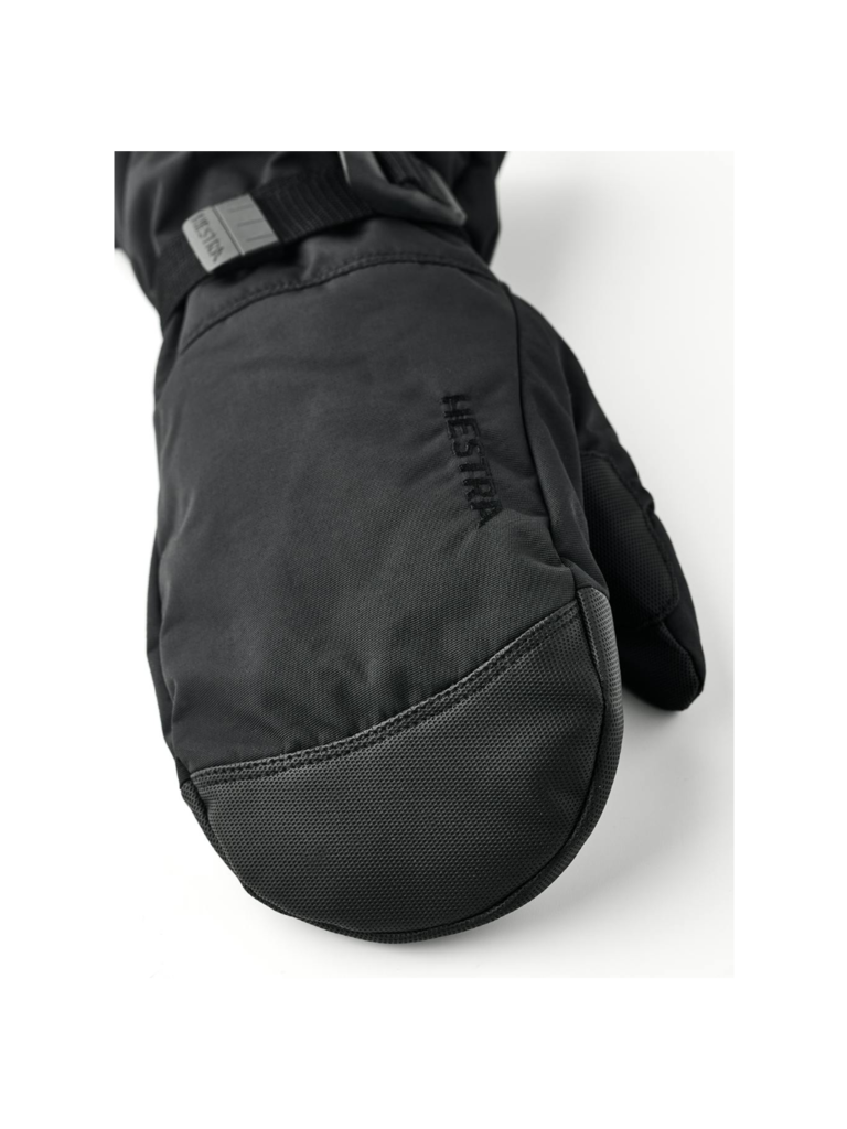 Longer mitten for skiing and snowboarding on cold winter days. The hardwearing polyamide backhand withstands wind and moisture, while the polyurethane palm provides good pole grip. The removable fleece liner is easy to wash and dry, and the synthetic insulation both insulates and wicks away moisture. This mitten is particularly suitable when you need more warmth for your fingers, but it also comes in 3- and 5-finger models.