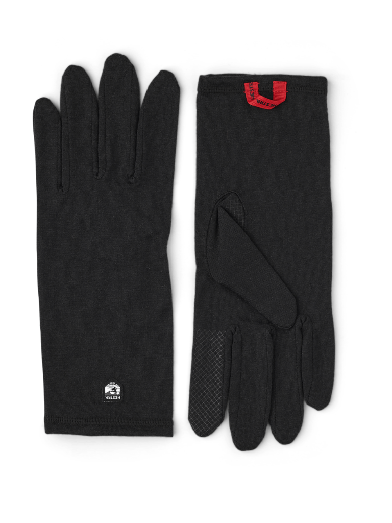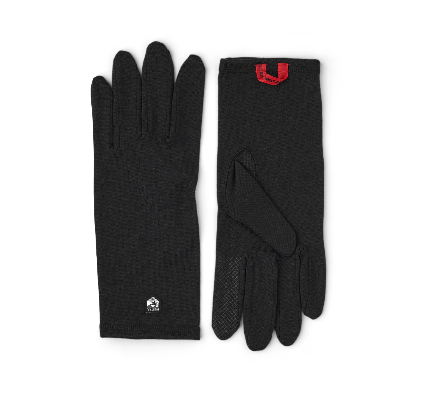 A long liner in merino wool ideal as an extra warming liner under a base glove. Helps to keep hands and wrists warm in colder conditions. Sewn in soft merino wool blended with polyester for extra durability. The touchscreen-compatible print on thumb and index finger means you can use a phone and other touchscreens without needing to take the liner off.