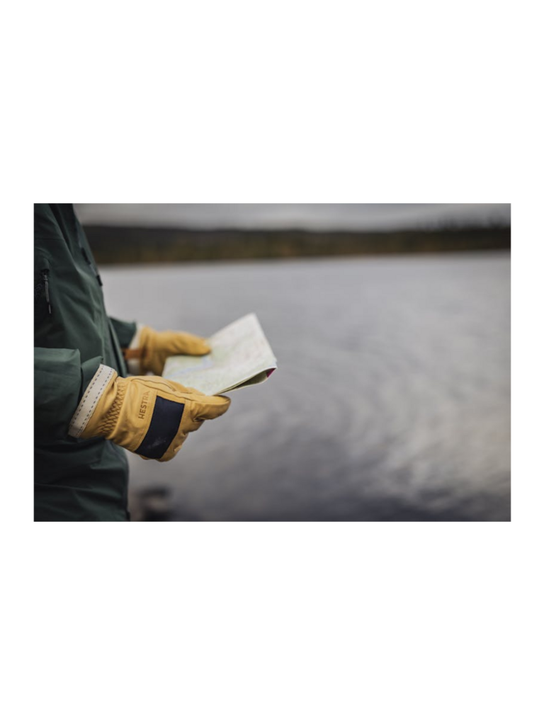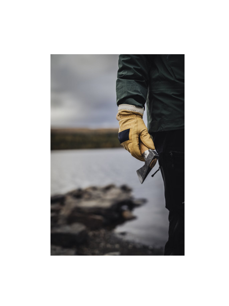 With its timeless style, Njord is a robust 5-finger leather glove in durable, natural materials. It has a removable, machine washable, knitted liner and the outer glove works on its own – or in combination with other Hestra liners – offering versatility in terms of functions in a single glove. Hardwearing goatskin provides protection from wind and weather, while the waxed cotton/polyester fabric on the backhand is wind and water-repellent too. It has a long cuff with decorative cotton edging. A practical, comfortable and attractive glove that will be by your side in the open air all year round for a long time to come, gaining a beautiful patina with use.