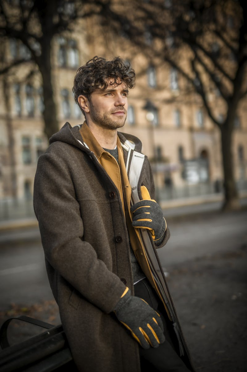 A timeless leather glove in sturdy nubuck leather, with a backhand in wool jersey. An attractive, warming everyday glove for men, with a relaxed style that works just as well for commuting to the office or exploring nature. A soft fleece lining with Primaloft Gold synthetic insulation keeps the hands warm in chilly winter weather. The wrist is relatively short, with an elasticated backhand and a ribbed cuff that gently encloses the wrist.