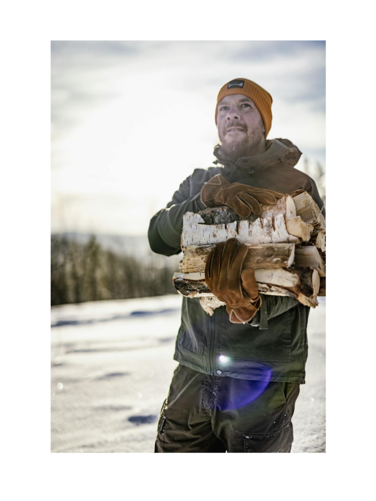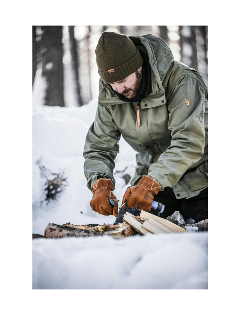 Split kindling, make fires, build shelters, deal with game – Oden Nubuck is designed for all kinds of tasks in the great outdoors. A robust, unlined work glove that literally functions as a second skin, protecting the hand from scrapes and injuries. It is sewn in supple nubuck leather with external seams for comfort and grip. And the thread is a sturdy fire retardant waxed cotton that won’t melt in the heat of a campfire. A pull tab on the cuff makes the glove easier to put on and an eyelet means you can attach it to a belt loop or rucksack, for example. Perfect for hiking, hunting and wilderness adventure.