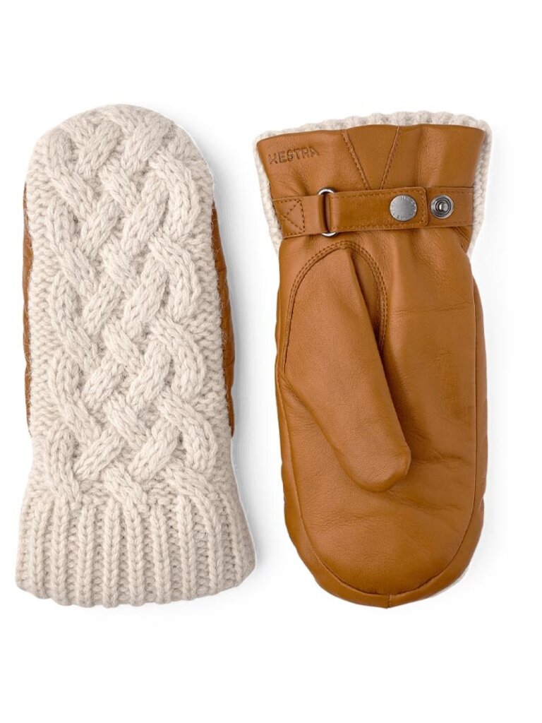 A warm mitten made with heavy cable knit Shetland wool on backhand combined with impregnated Hairsheep Nappa in palm. Insulated with warming Primaloft Gold.