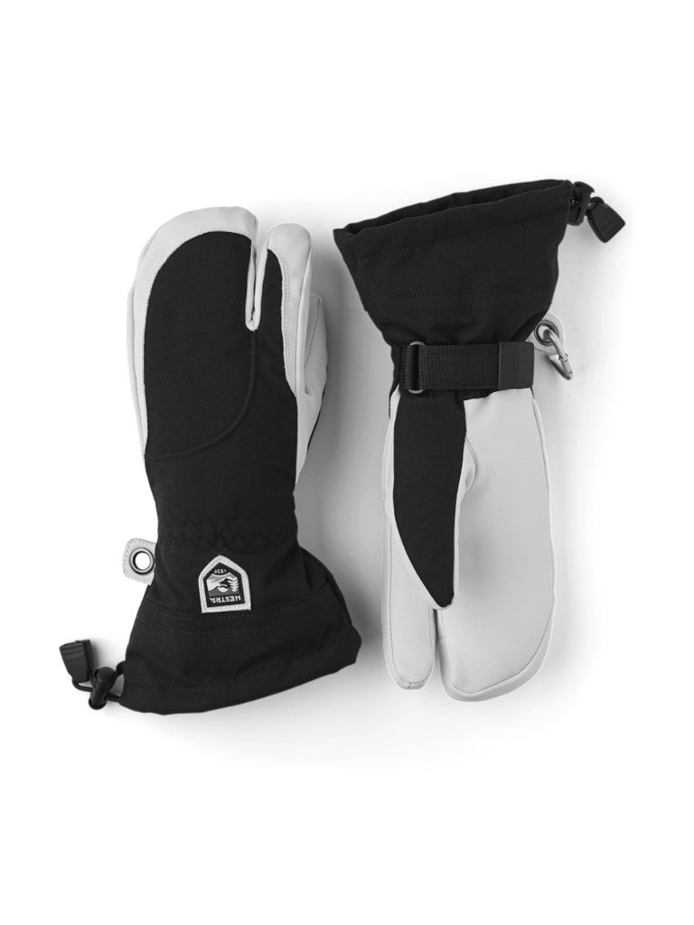Hestra's Army Leather Heli Ski was originally created for ski guides in western Canada who needed a reliable and warm ski glove for long, cold days in the snow. This 3-finger women's glove has a narrower cut to fit women's narrower hands but is sewn in the same hardwearing, weather-resistant combination of goatskin leather and 3-layer polyamide fabric as the men's version. Like all 3-finger versions, it offers somewhat more warmth while retaining a certain amount of finger dexterity. A range of smart functions come in handy when you can't head indoors to warm up that often. For example, the liner is easy to remove and dry, or replace with a thinner inner glove when you're being more active and hiking uphill. In powder snow, the long cuff with snowlock and wrist adjustment keep the snow on the outside and the warmth on the inside. A wrist strap reduces the risk of dropping a glove if you take it off to adjust your equipment or use your phone. And the included carabiner means you can hang the glove up with its opening facing downwards – practical to avoid your gloves filling up with snow while you're wearing just a thinner liner. A durable, flexible companion for skiers that spend a lot of time outdoors and who often find themselves far from the ski resort and its comforts. Also available as a mitten and 5-finger model, and in a men's version.