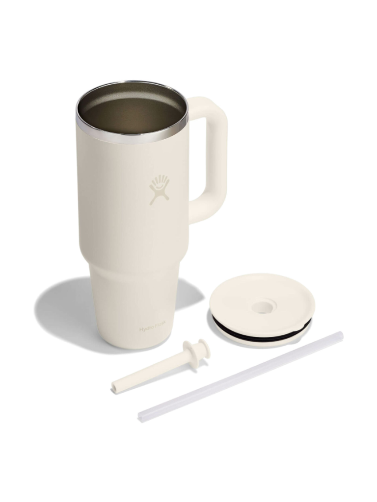The insulated Hydro Flask 32 oz Travel Tumbler cup is here to hydrate more and refill less. The insulation keeps drinks cold for hours, and the durable handle makes it easy to take along anywhere. The 32 oz size stainless steel tumbler bottle can go anywhere, even fitting most cupholders. Cold stays cold, and the flexible straw is easy to sip any which way.