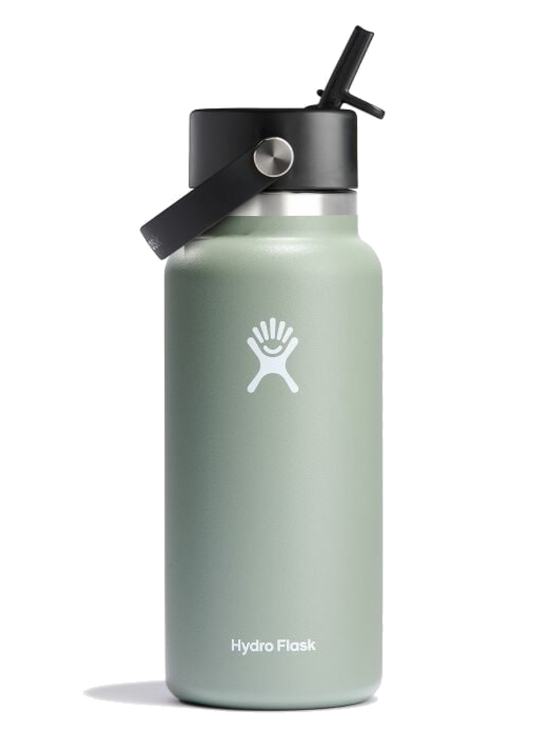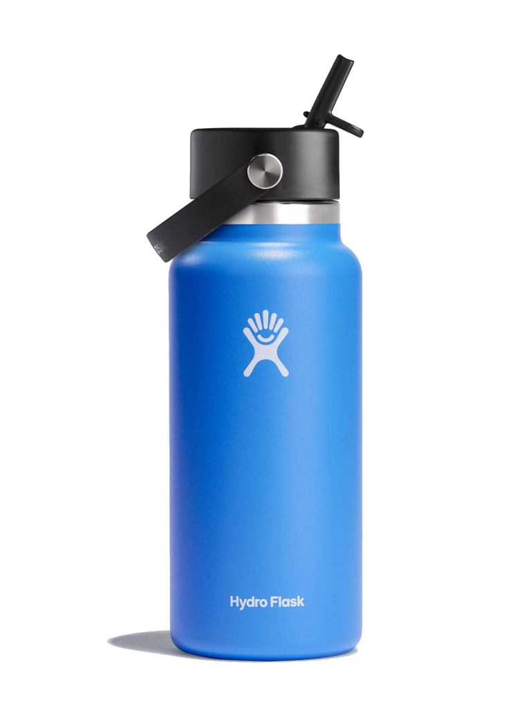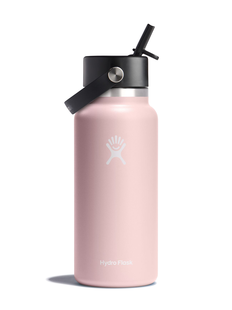A 32 oz Wide Mouth water bottle with our leakproof Flex Straw Cap—easy to fill, easy to drink. Open it up, add your ice, and flip to sip. The insulated stainless steel keeps it cold for up to 24 hours.