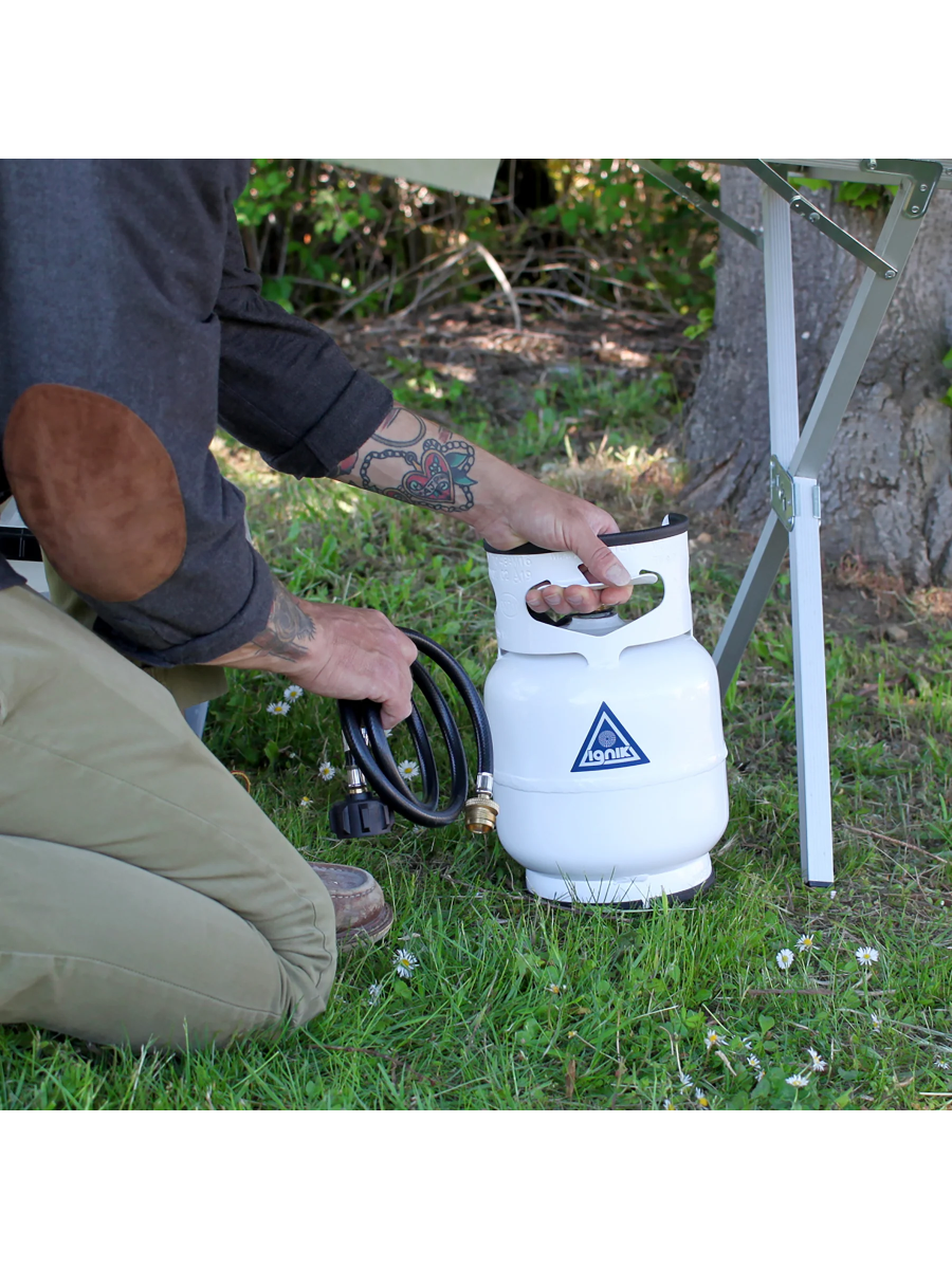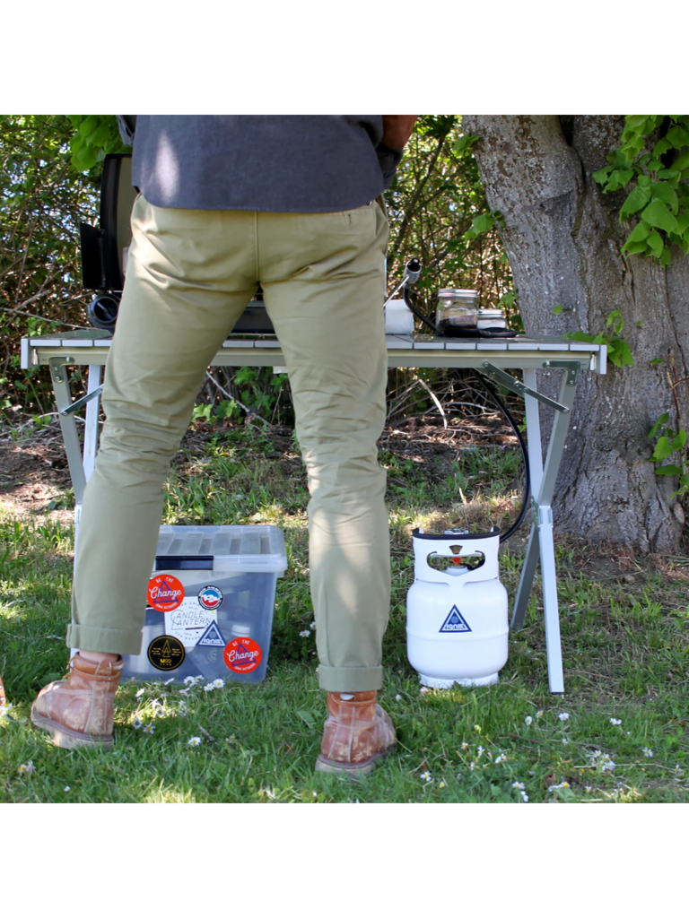 The gas growler is a refillable, no-waste solution for heat and cooking in the outdoors. Green propane bottles are wasteful, messy, and a pain to dispose of properly. You probably don't think about it much, but these bottles are a single-use product. Ignik solves problems like this. We enable you to heat, cook, survive, and thrive in the outdoors, with less waste.