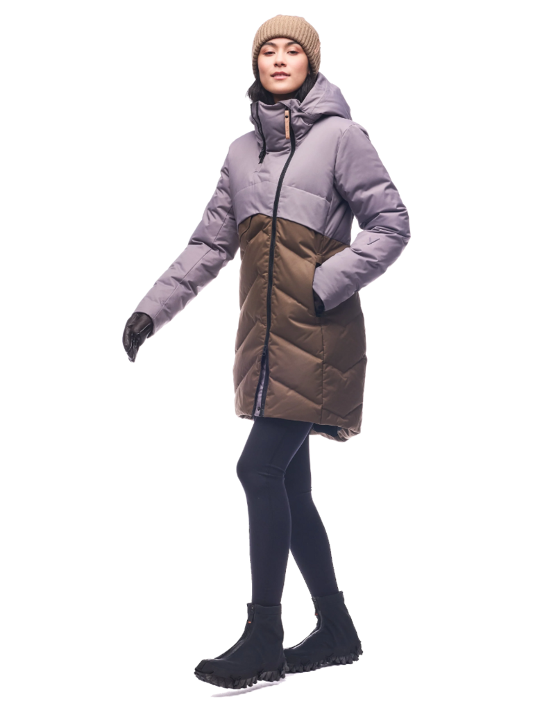 Create an accountOur iconic AYABA jacket, designed to tackle cold winters. Design details include an exterior phone pocket and a gusset opening at the collar for easy scarf wearing.
