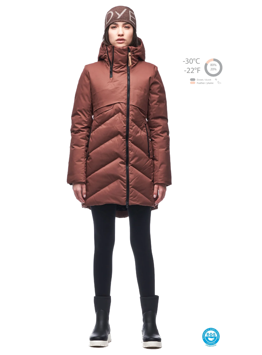 Ultra-resistant nylon twill with a water-repellent finish and 10K/10K lamination to keep you dry. Superior waterproofing and breathability. RDS down insulation for a flexible coat and lasting warmth.