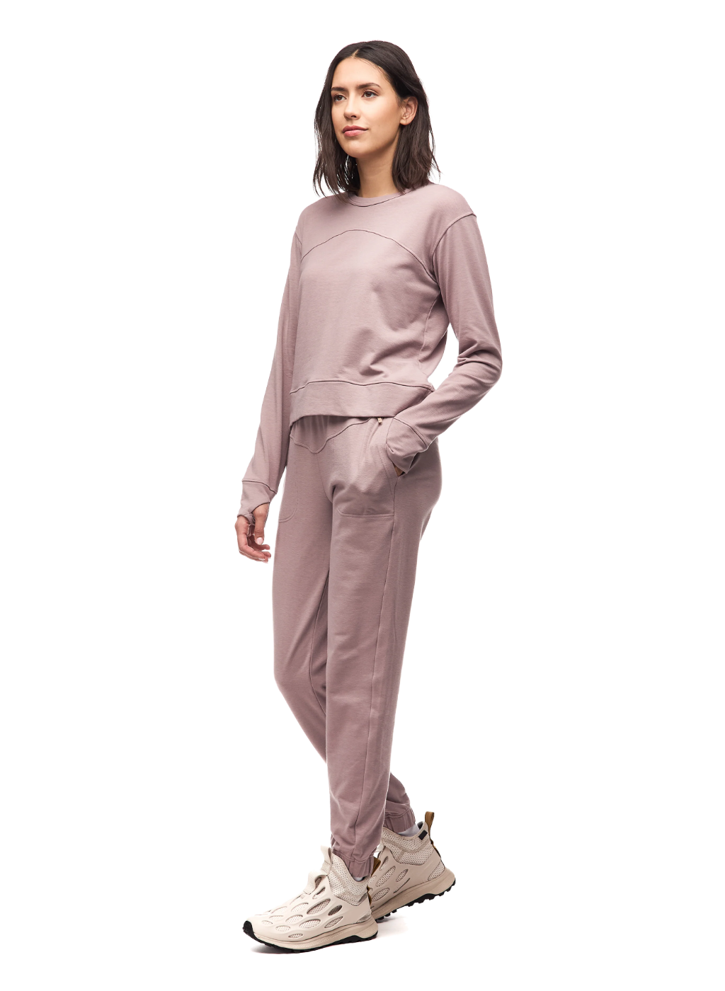 A long-sleeved crewneck top in our softest Merino DRIRELEASE® fabric with a banded waist cuff and cozy thumb holes.