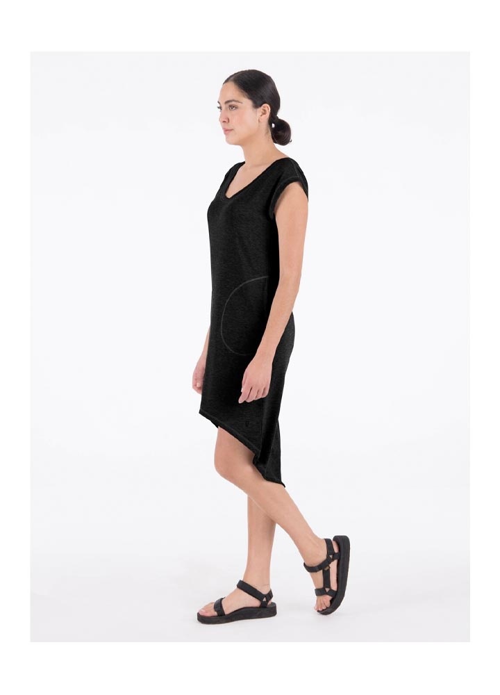 The MAINA dress is made from fabric containing Lyocell, a fibre made of wood cellulosic obtained from sustainable forests. Partially eco-friendly, drirelease® Lyocell ensures long-term fabric performance and maintains its softness after wash. It has moisture-wicking and fast drying properties, which minimizes odors and maximizes comfort and has a UPF rating 30+. These features make this dress versatile, great for travel and various outdoor activities.