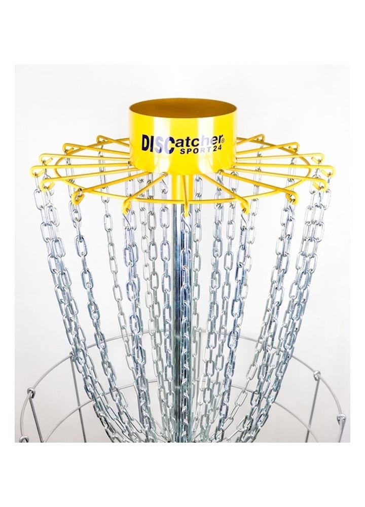 The DISCatcher® Sport uses 24 strands (18 outer, 6 inner) of galvanized chain along the outside of the chain rack, which makes it one of the best catching practice targets available. The DISCatcher® Sport is not intended for permanent outdoor installation.