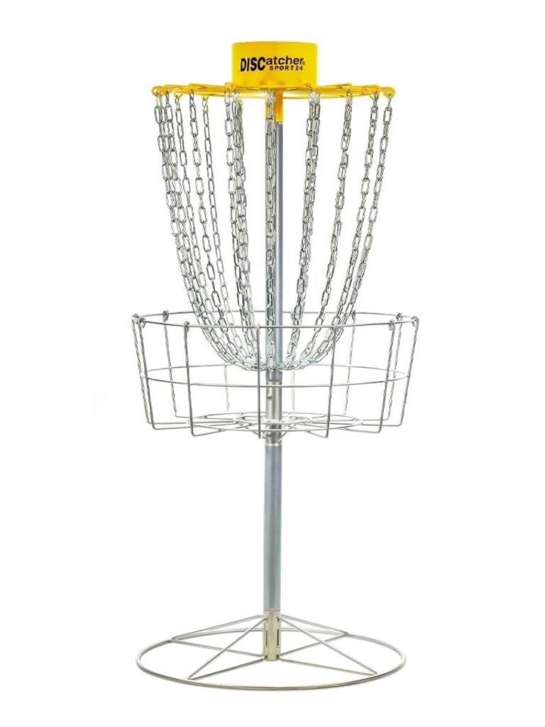 The DISCatcher® Sport 24 target is an excellent practice target and it can also serve as a target for temporary courses, camps, schools and home. With just five parts, it assembles with the help of a screwdriver in about 5 minutes. The DISCatcher® Sport 24 is PDGA approved for tournament play, and is fun for all ages!