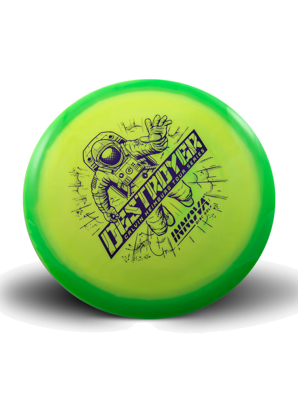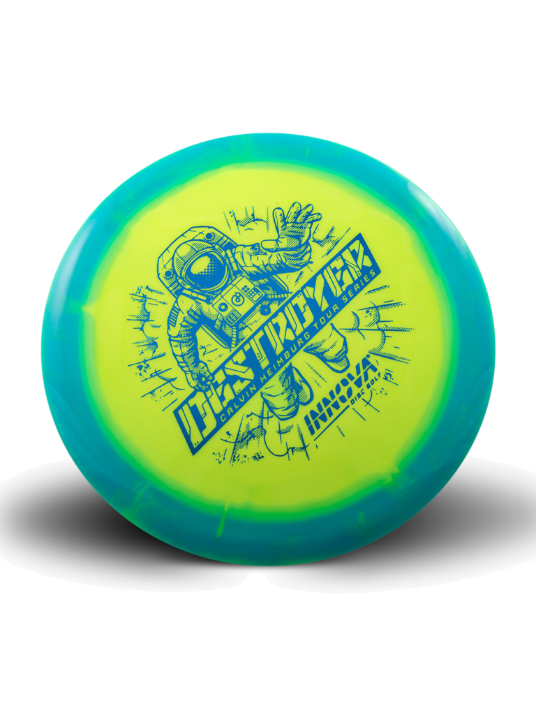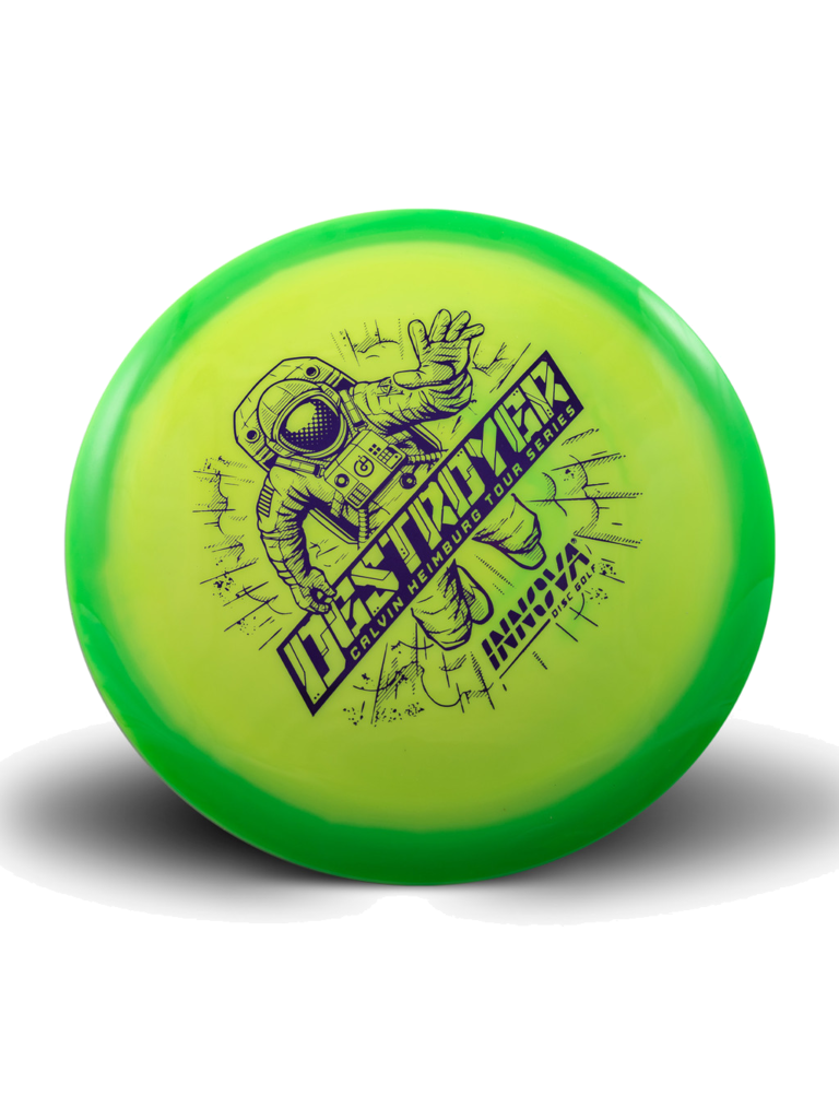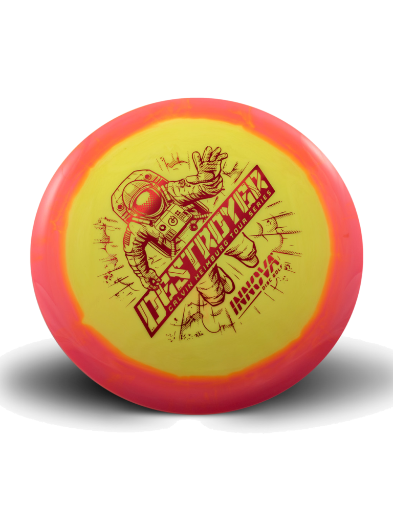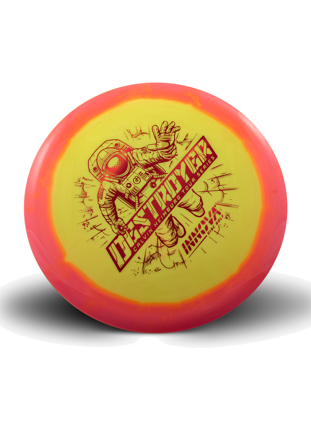 Calvin’s 2025 Tour Series Destroyer is produced in Innova’s premium Halo Star plastic—a high-performance blend that offers an extra touch of stability while maintaining a comfortable, grippy feel. The bright, contrasting Halo effect makes these discs even easier to see when the occasional rogue bush or tree gets in the way of what would’ve been a perfect shot. Whether you're threading delicate lines through the woods or battling tough weather on a long, open fairway, this disc is built to conquer it all.