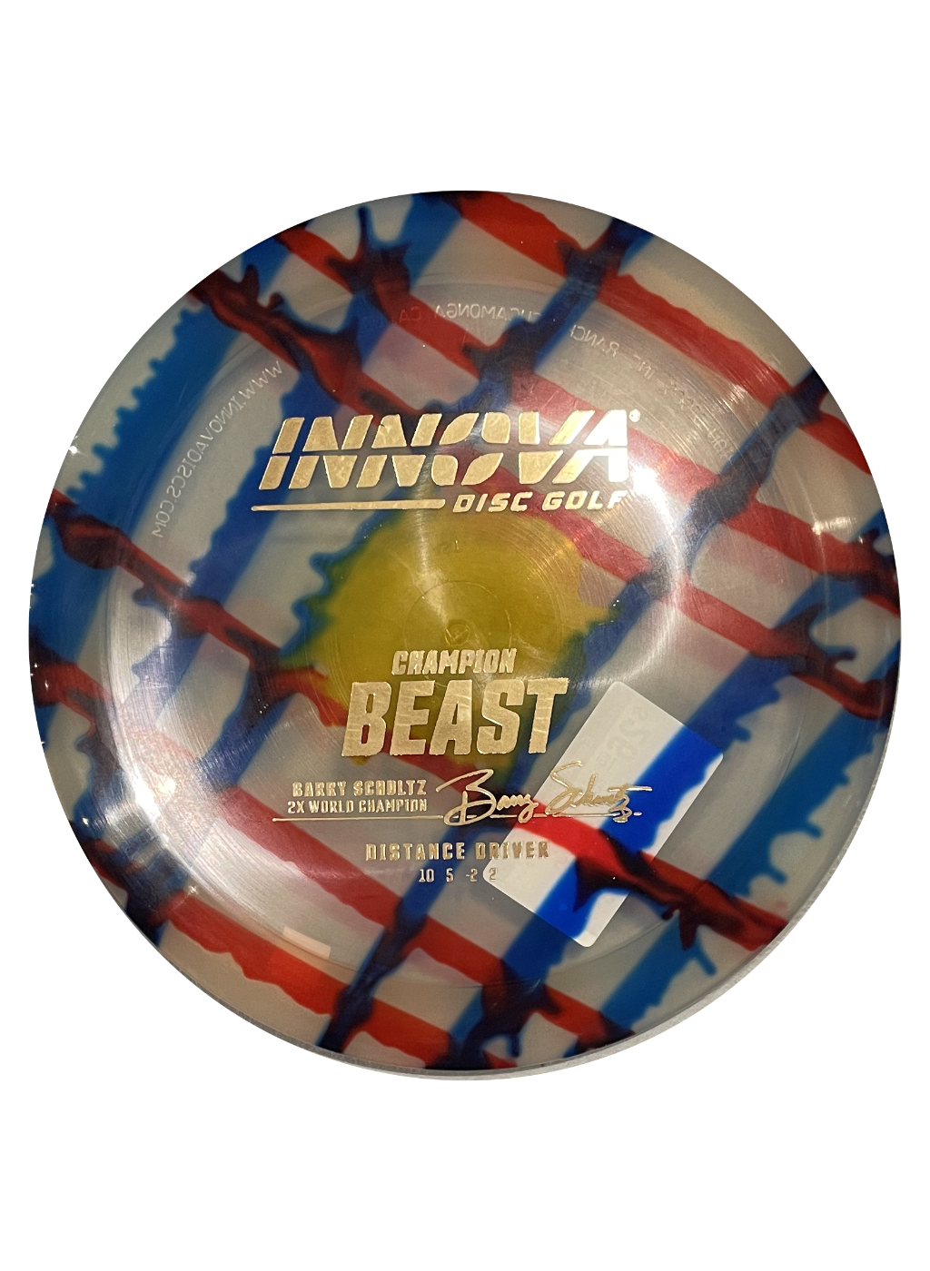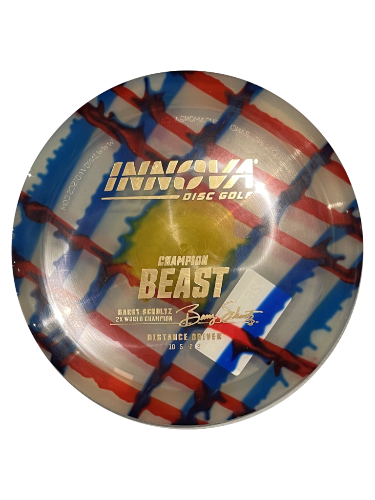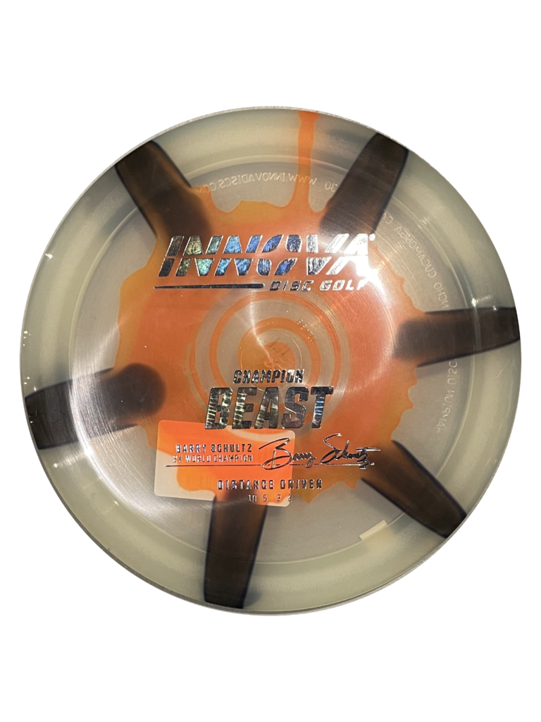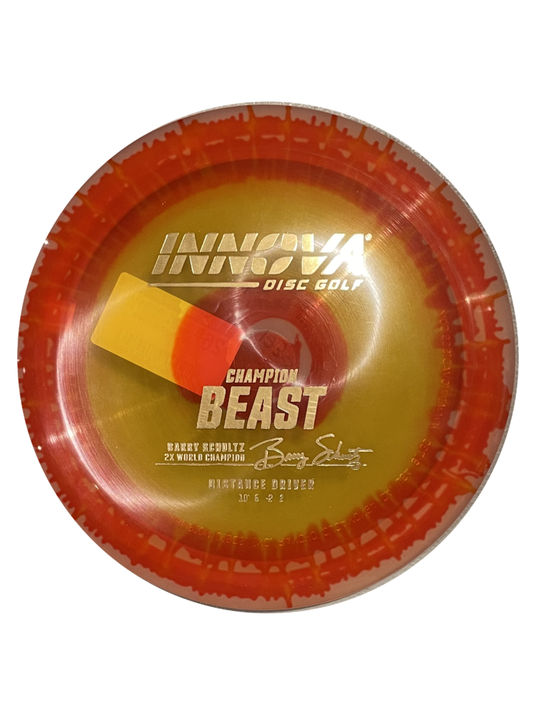 The Beast was issued in the era of the wide rimmed driver. It was an instant classic when it was released; giving players more distance using less power. The Beast’s high glide, high speed and high speed turn all combine to give big distance. It is suitable for beginners and pros alike. The Champion Beast is endorsed by two-time World Champion Barry Schultz.