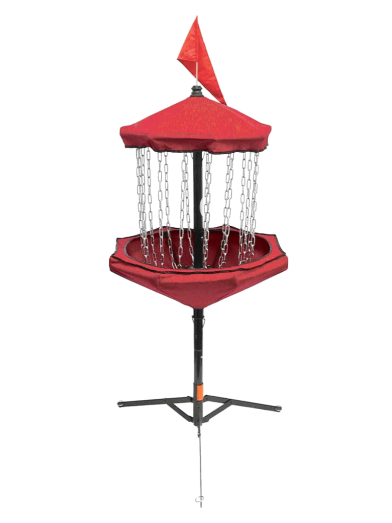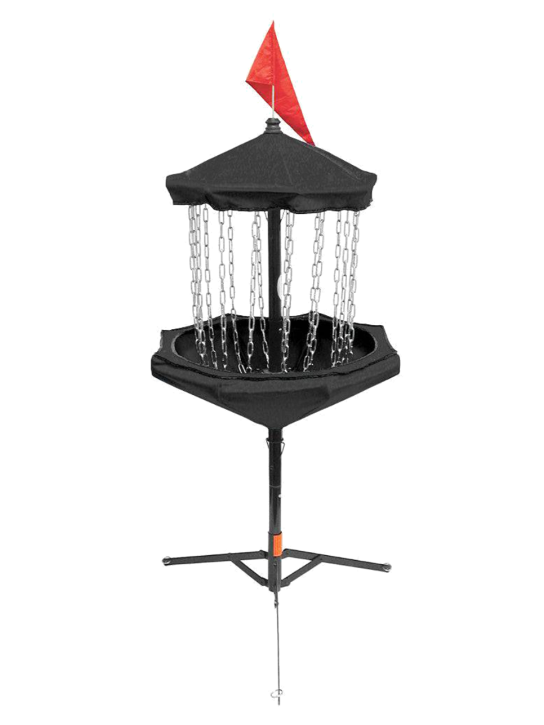 The SkillShot™ is built for action! Weighing in at a very portable 26 pounds, and folding to the size of a golf umbrella, the SkillShot™ is the most portable target in disc golf. It even comes with a flag for reading the wind and its very own carry case.