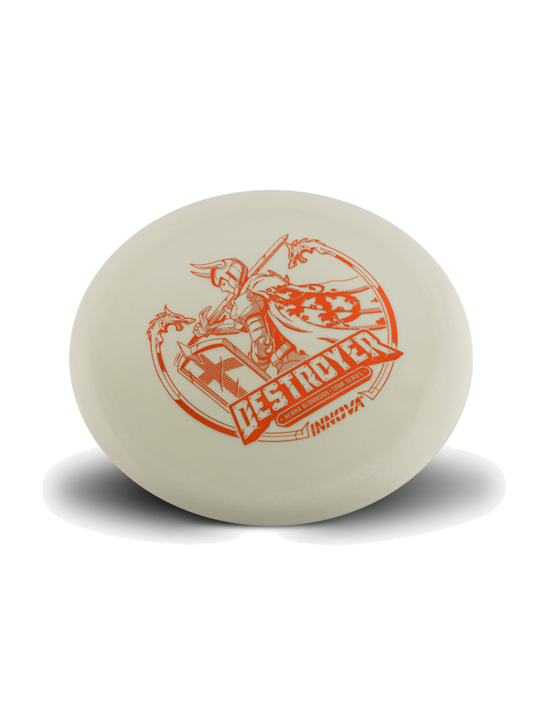 The Destroyer is a very fast stable long distance driver. This disc is much like a faster Wraith, but with a little more high and low speed stability. Great disc for sidearm throwers and those with lots of power. Can handle headwinds and throws with off axis torque. Not suggested for beginning players.