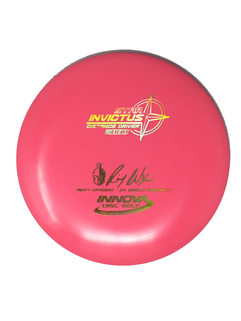 Invictus. It’s Latin for “unconquered.” Thrown with moderate power Invictus has significant fade the entire flight and tackles the wind with ease. Pros refer to it as a “faster Firebird.”
