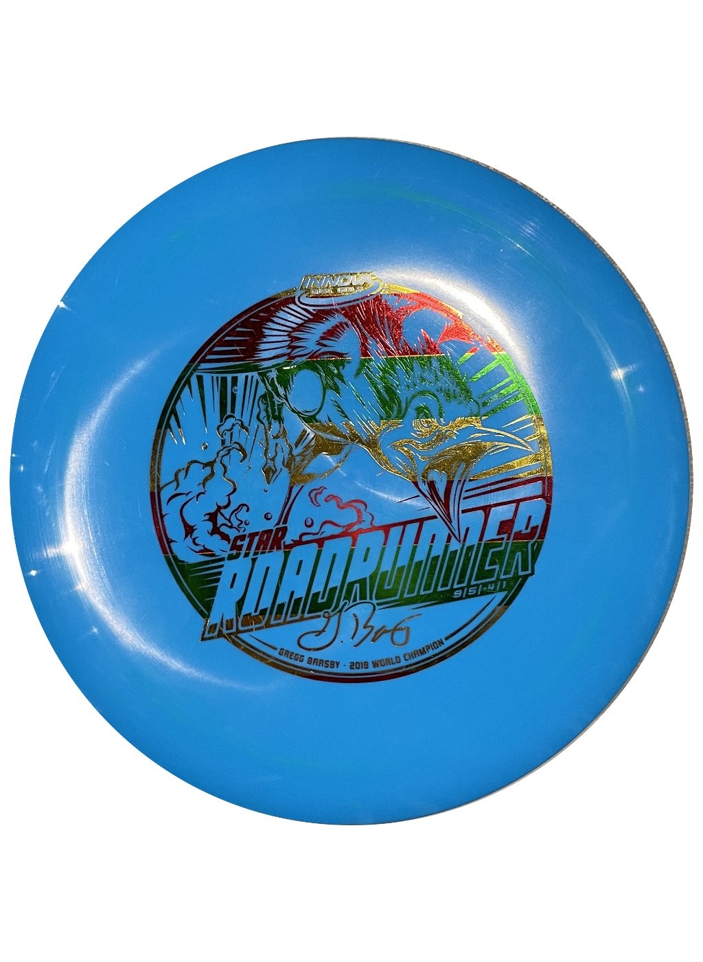 The Roadrunner is a long-range distance driver with lots of glide. It makes an excellent finesse driver or long range roller. Power throwers can use this disc for long turnover shots and rollers. Less powerful throwers can use this disc for long, straight shots or low tunnel shots. One of the best Distance Drivers for turnover shots.