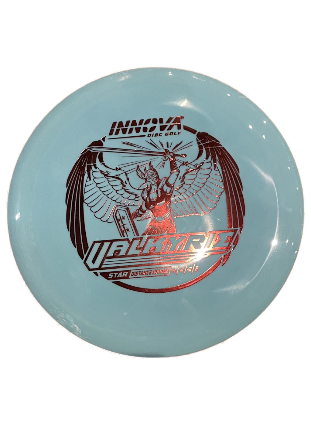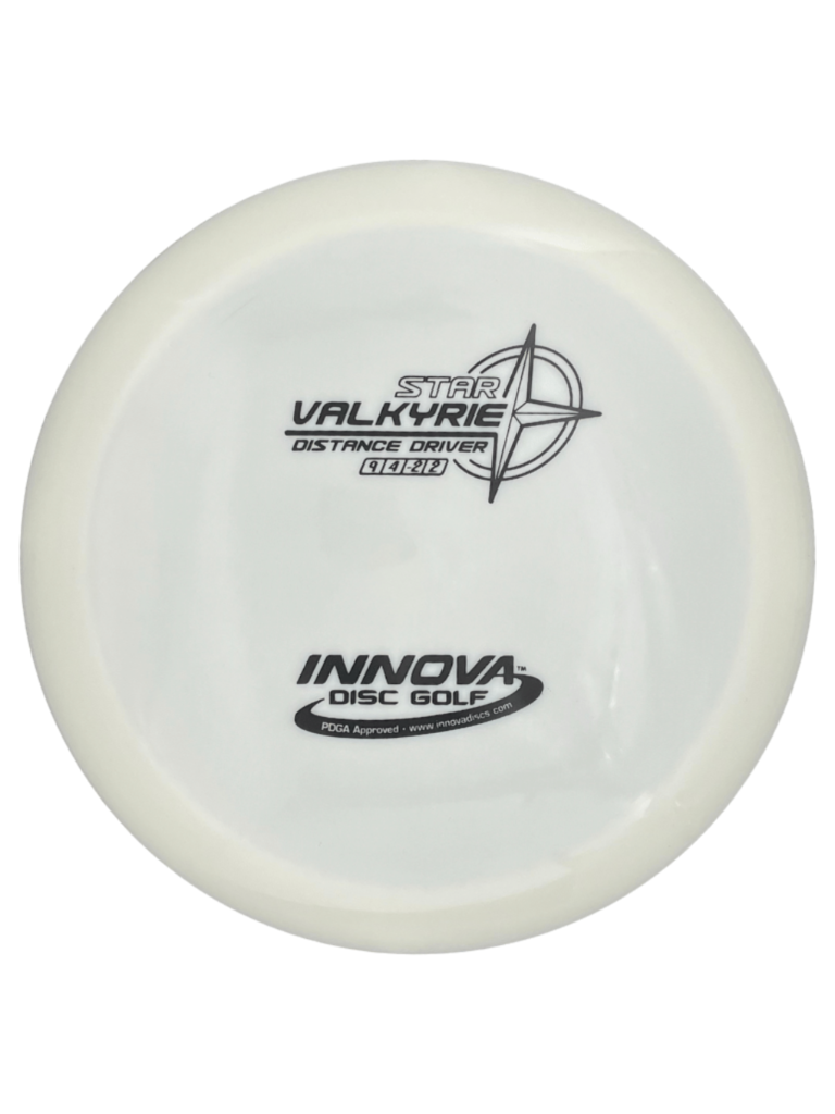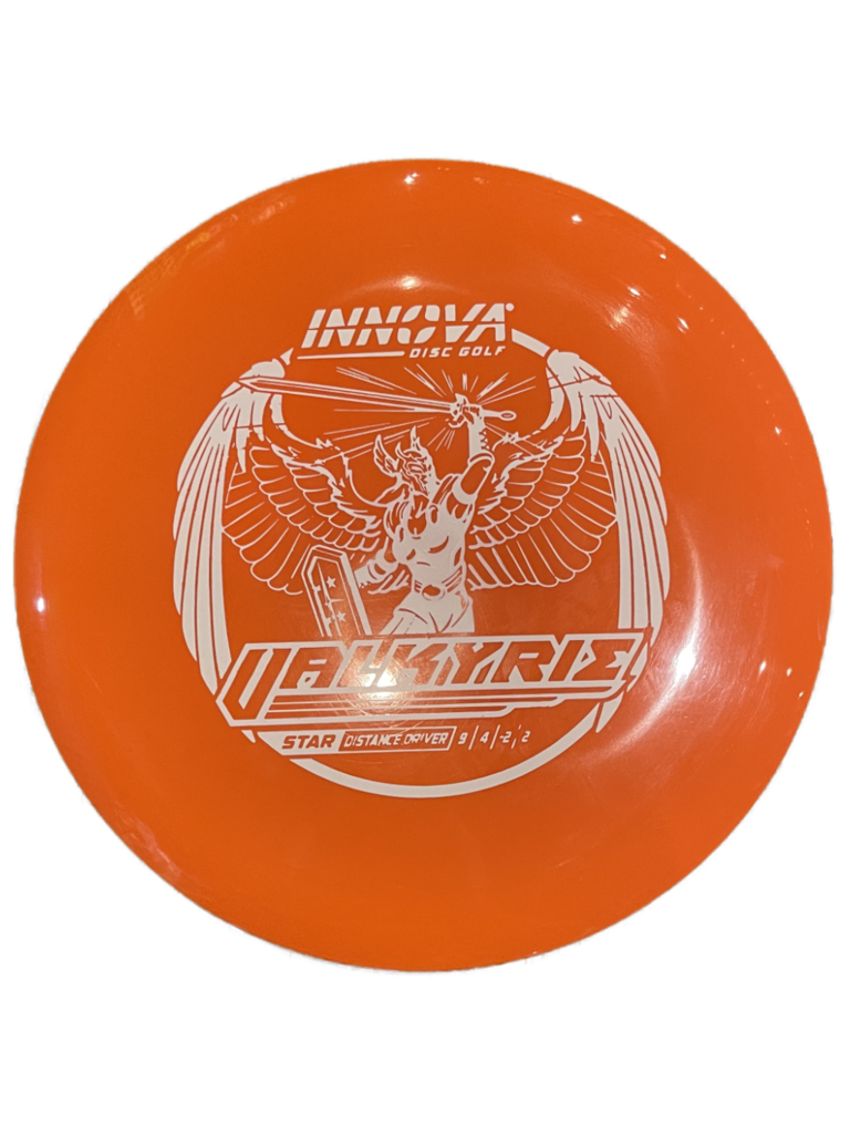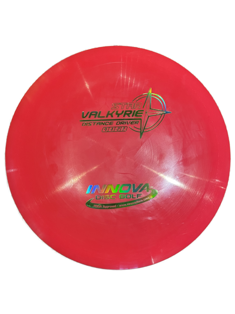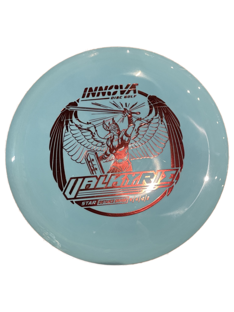 One of the most popular drivers in the world, the Valkyrie held the world distance record for a decade. This is a stable flying distance driver with a good degree of high speed turn and fade. The Valkyrie can be used by players of all skill levels. It is a good distance driver for newer players developing form, and can be used for turnover shots and rollers for more advanced players. Because of the popularity of the Valkyrie it is available in just about every plastic Innova has to offer; DX, Pro, Champion, Star, and even Glow Champion.