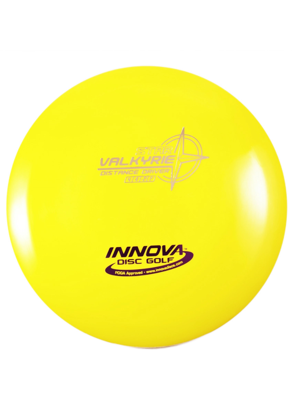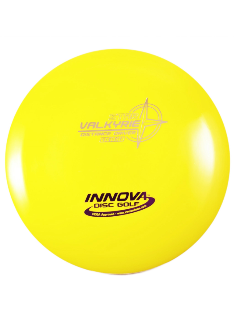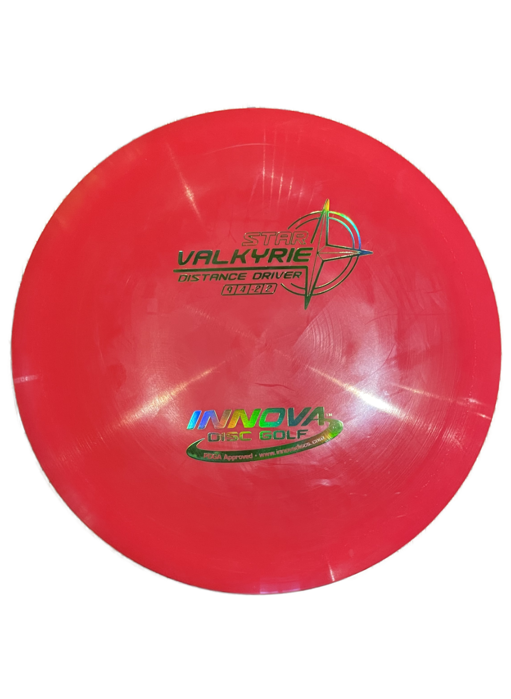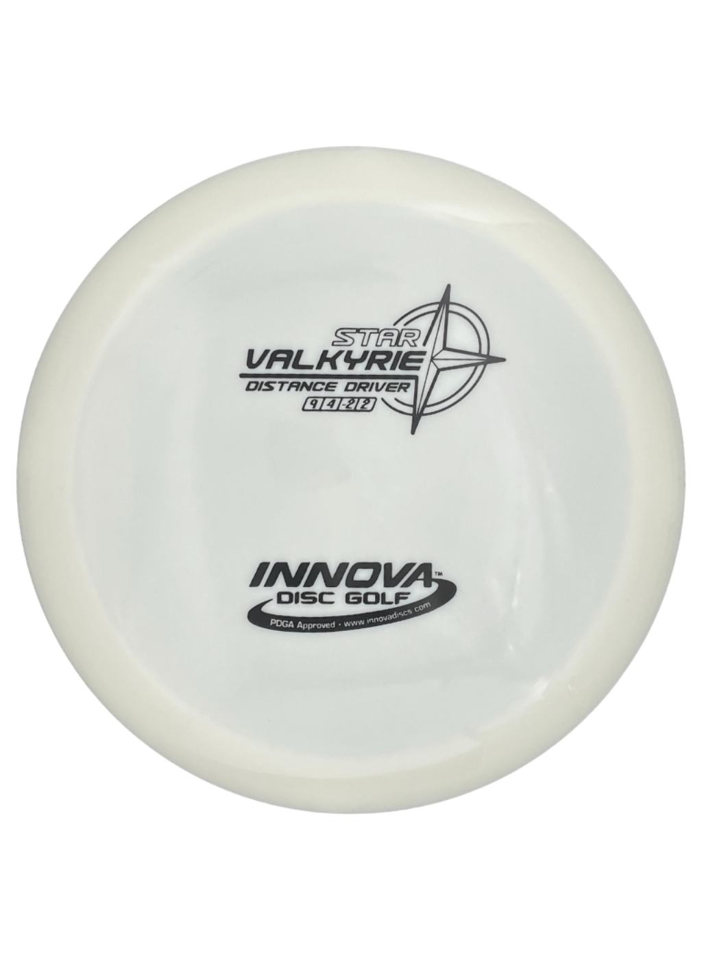 One of the most popular drivers in the world, the Valkyrie held the world distance record for a decade. This is a stable flying distance driver with a good degree of high speed turn and fade. The Valkyrie can be used by players of all skill levels. It is a good distance driver for newer players developing form, and can be used for turnover shots and rollers for more advanced players. Because of the popularity of the Valkyrie it is available in just about every plastic Innova has to offer; DX, Pro, Champion, Star, and even Glow Champion.