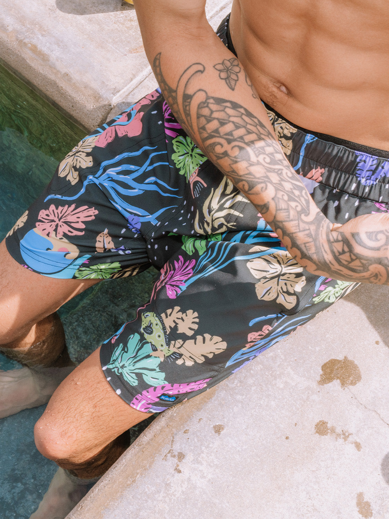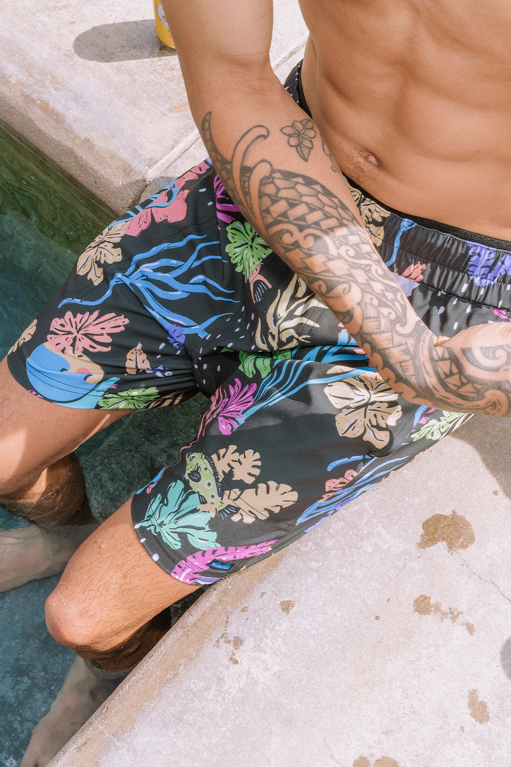 Create an accountThe Costa is a hybrid short with function for the drink and fashion for the pub. Details run deep here with pattern round woven draw cord with KAVU logo printed aglets, on-seam mesh hand pockets, back patch pocket with rounded corners and eyelet drains, and key bungee with hook and loop closure. Constructed with one of our favorite fabrics - a printed poly stretch that is quick dry and shows color beautifully.