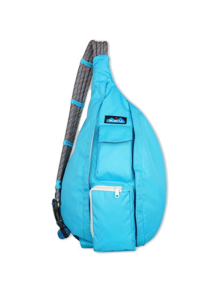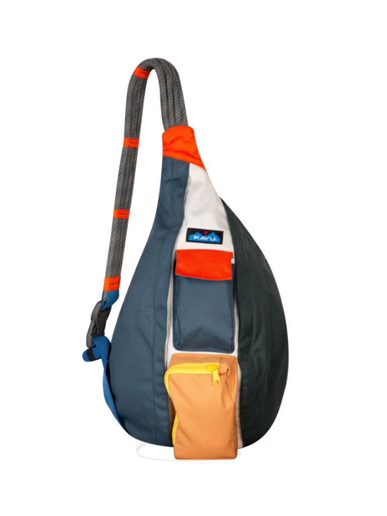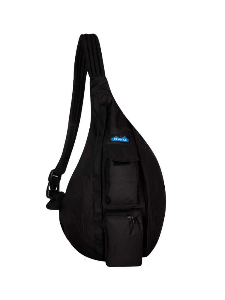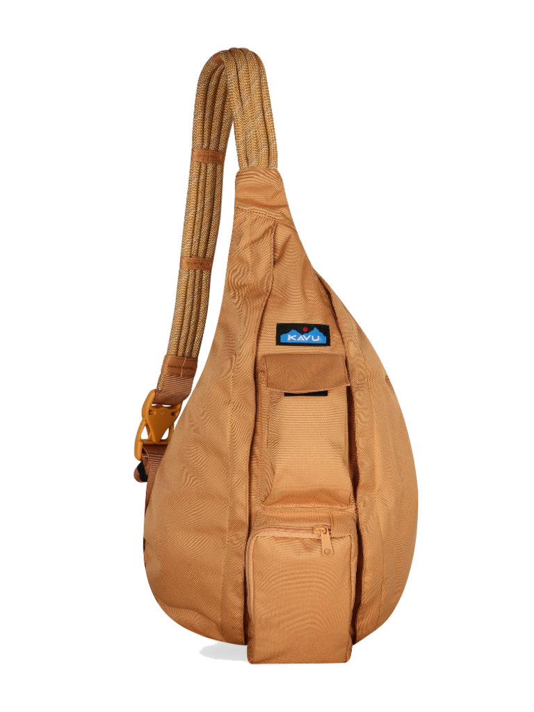 The Rope Sling fits the body like a bag should. It's similar in size and design to its fraternal twin the KAVU Rope Bag with one exception: the Rope Sling is made of polyester, making it water resistant.
