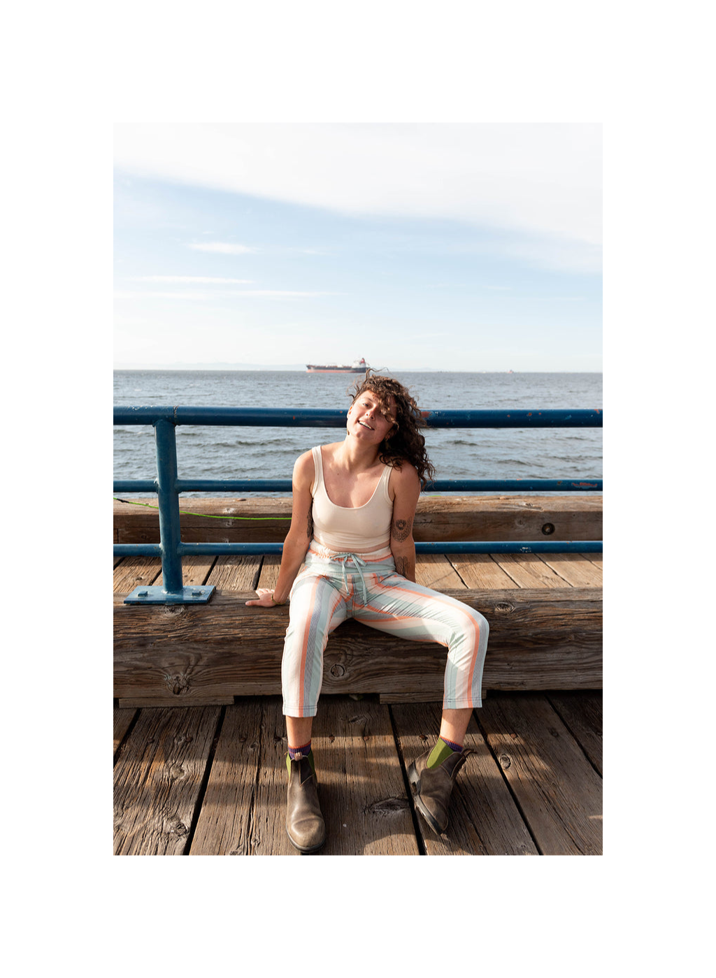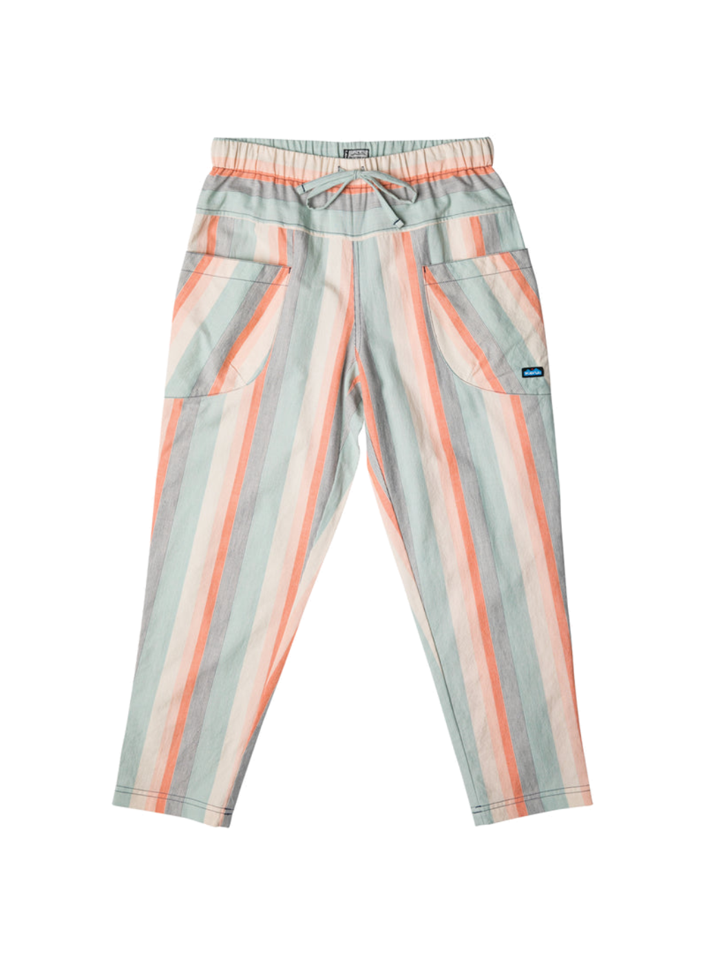 Create an accountMade of a lightweight cotton yarn dye weave, the Woodside was designed with warm weather travels in mind. High-rise pegged pant with elastic waistband and front patch pockets is just what you need while watching the sun set over the ocean with a margarita in hand.