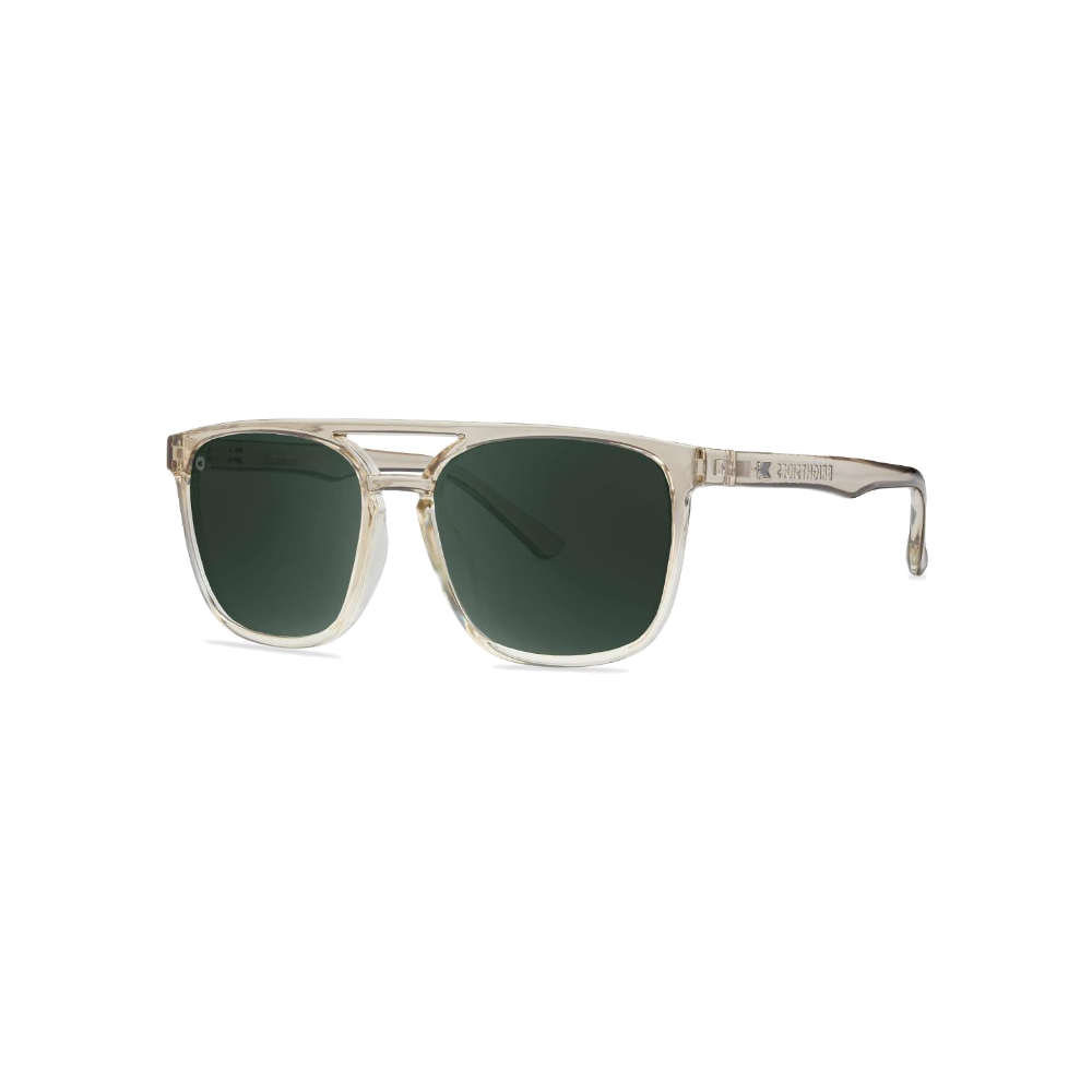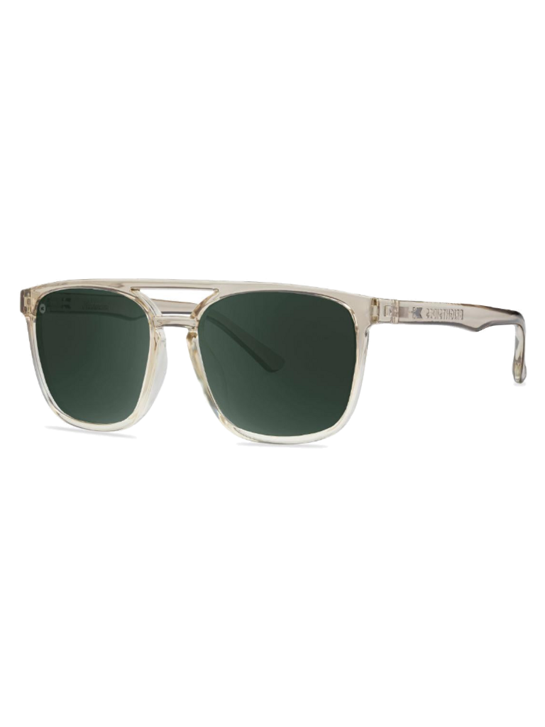 - Subtly winged corners and a rounded double-bridge brow give this pair an extra dose of cool