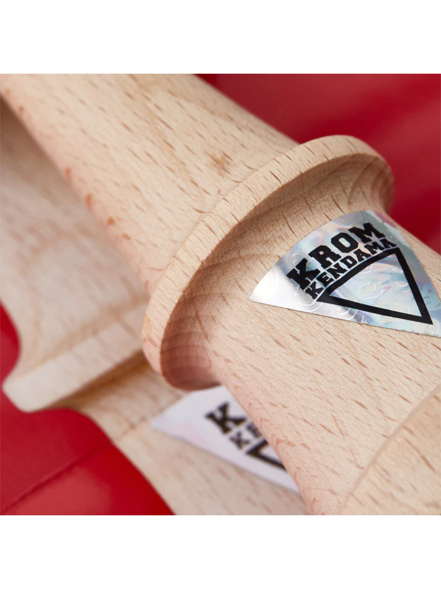 KROM CK shape ken in beech wood with triangle sticker. 61mm LOL® clear coated beech wood tama, 30% white scope with “KROM” tracking stripe. Custom box and stickers.