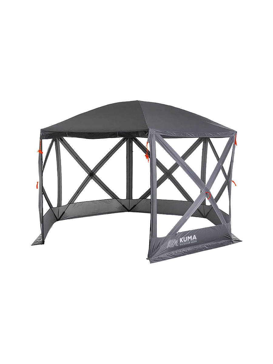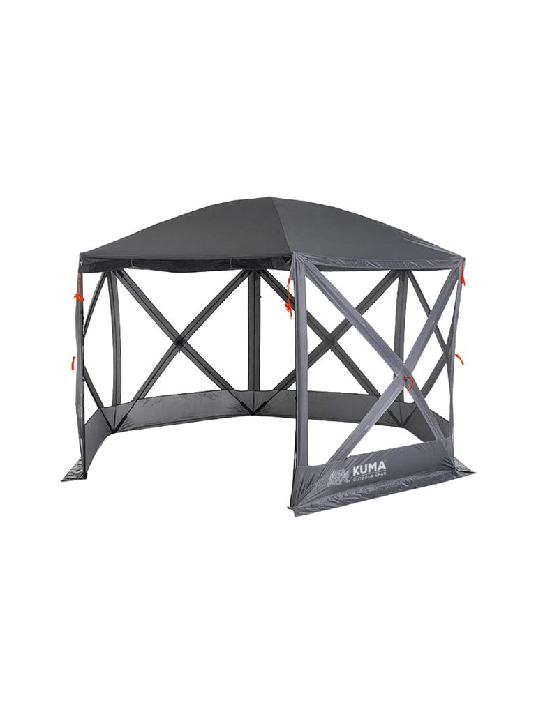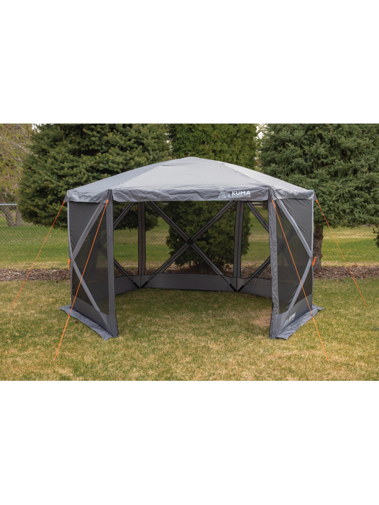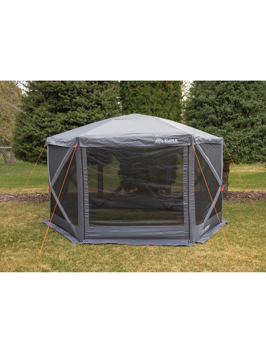 Create an accountGather your friends and family in this quick set up Bear Den Gazebo. NOW 6" TALLER!! Big enough to fit a picnic table, you can keep having fun while being protected from the elements. Builds in 45 seconds, take down in 15 seconds (not including new steel door frame pole). Updated reinforced corner base joints for extended durability. Complete with dual vertical side zippers to for large roll up front door opening.