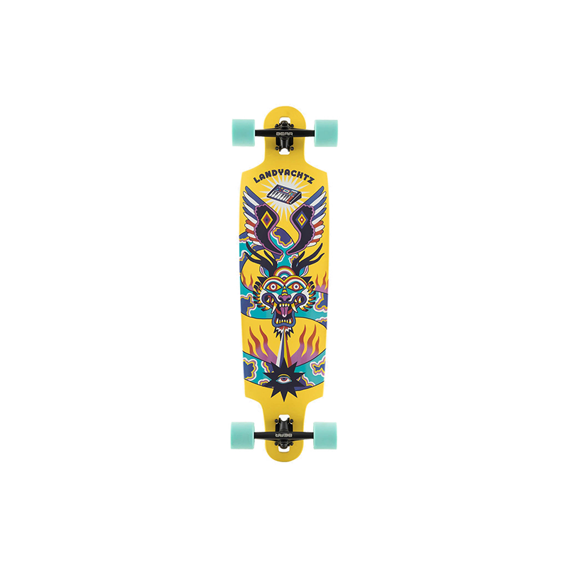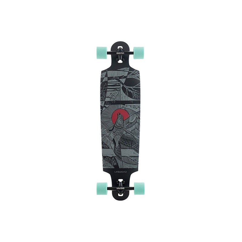 Create an accountThis larger, directional drop-through longboard comes in at 38" long by 9.9" wide. 8 ply construction in a board of this size results in a tiny amount of dampening flex which works to smooth out your ride on any rougher roads while still being stiff enough to handle some speed and sliding.