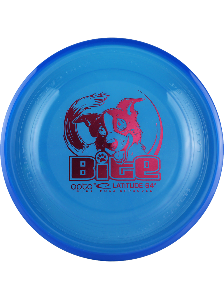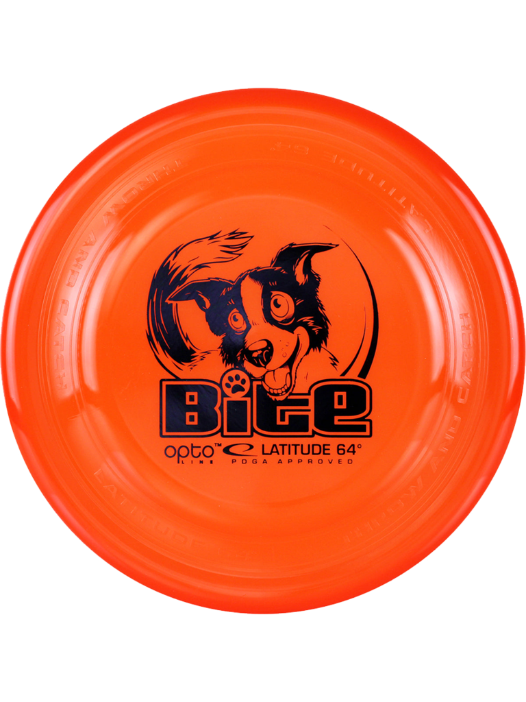 Create an accountDo you want a dog disc that can take a beating? Look no further. The Bite is the latest in dog disc technology to hit the canine sports arena. Using experience from production of the World’s premiere disc golf products, Latitude 64° has developed the Bite to all dogs and dog owners in need of a disc that can handle a beating. A reliable neutral flight, combined with puncture resistant material has deeply impressed Latitude 64's test panel. Try it out yourself and prepare to be amazed!
