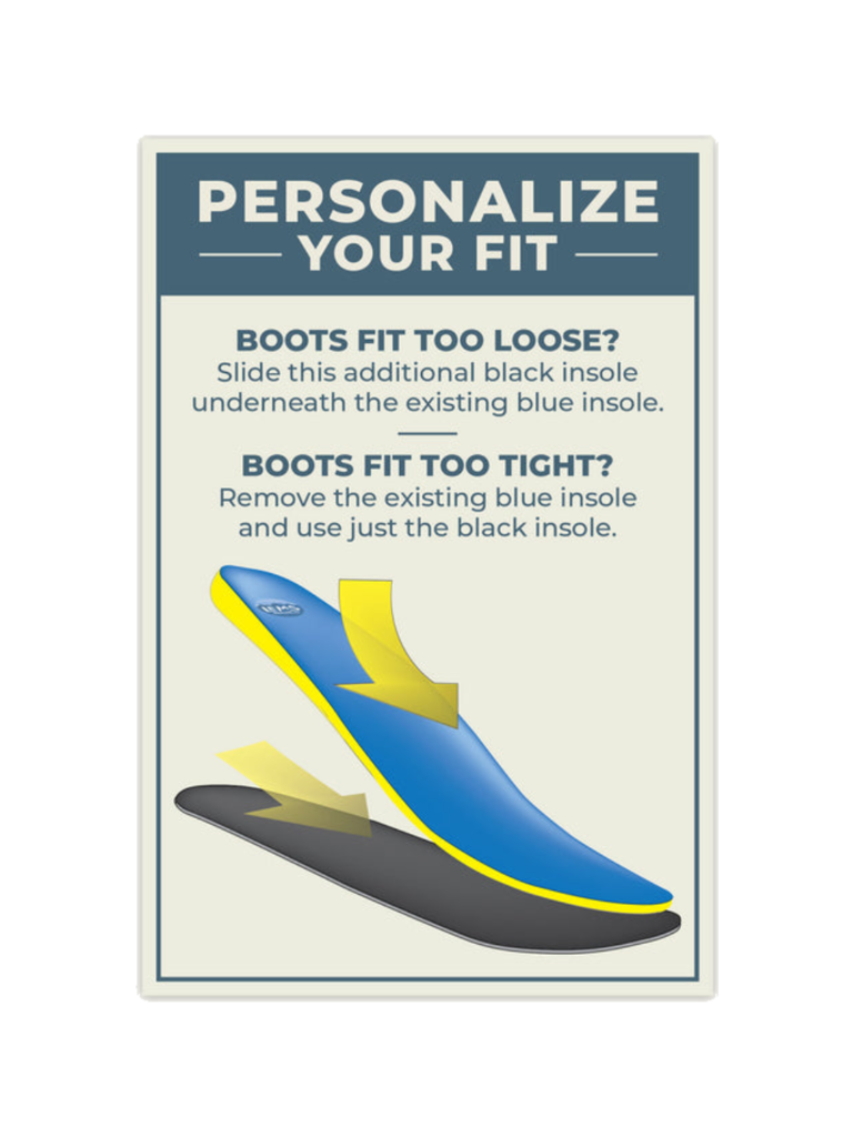 Create an accountShoe fit too loose? Slide this insole underneath the existing insole that comes with your shoes for a snugger fit. Fit too tight? Remove the existing insole that comes with your shoes, and just use this one instead.