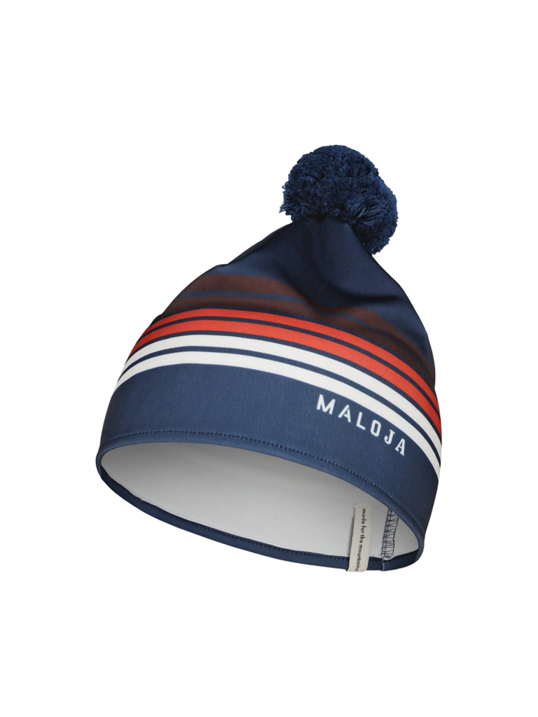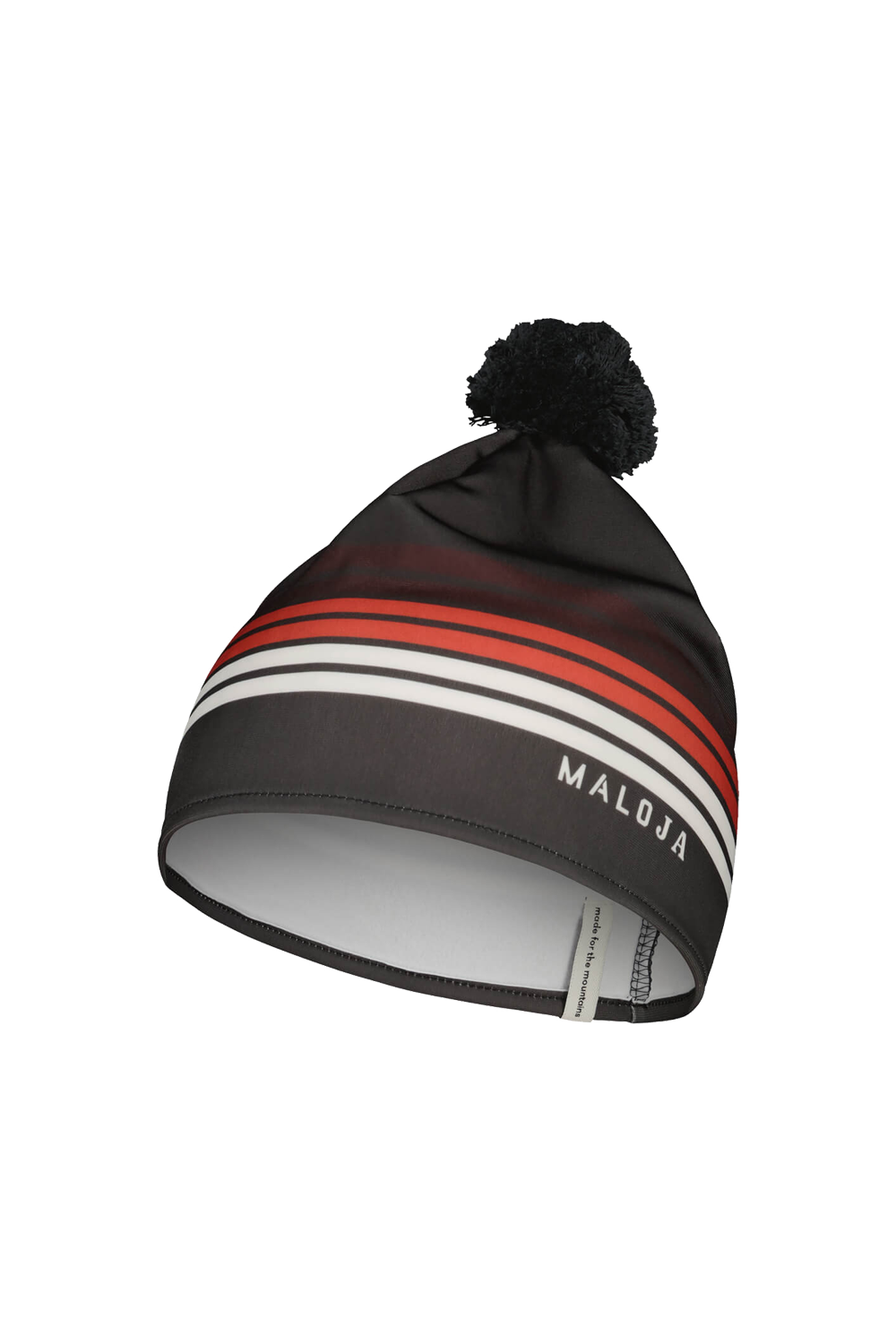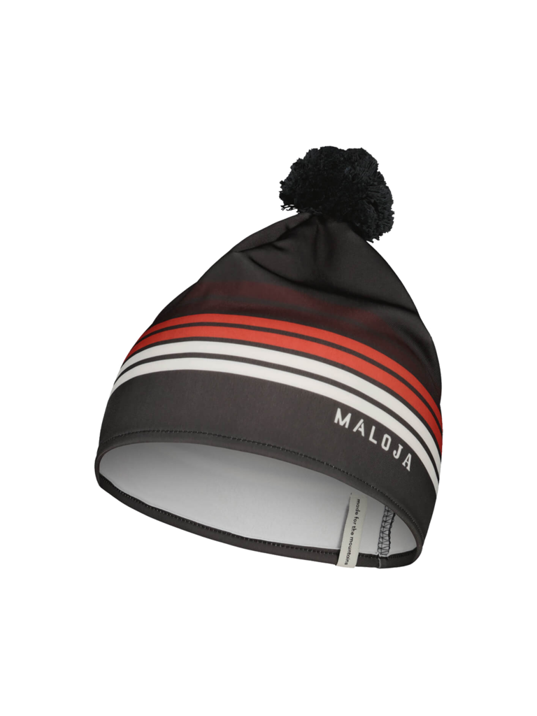 Quick drying, bi-elastic, warming pom-pom beanie made of recycled materials, flat seams, thin material.