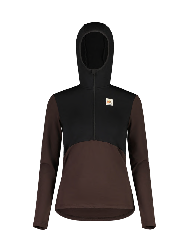 This functional midlayer combines high thermal performance in the upper area with good breathability due to the breathable Skin Stretch material at the arms and in the lower area. Modern colorblock design, Mountain People patch on the chest.